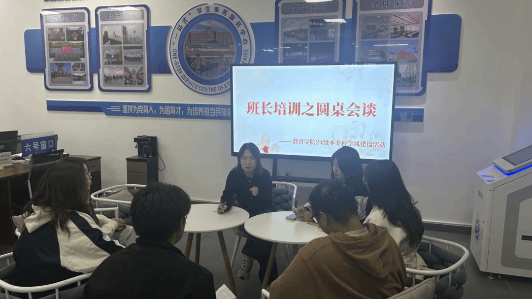10月14日下午,教育学院于“一站式”学生事务服务中心成功举办“班长培训之圆桌会谈——教育学院24级学风建设”专题培训。本次活动由教育学院高馨老师主讲,旨在针对步入大二学年的2024级学生特点,进一步加强班级建设,夯实学风基础,提升班长队伍的履职能力。