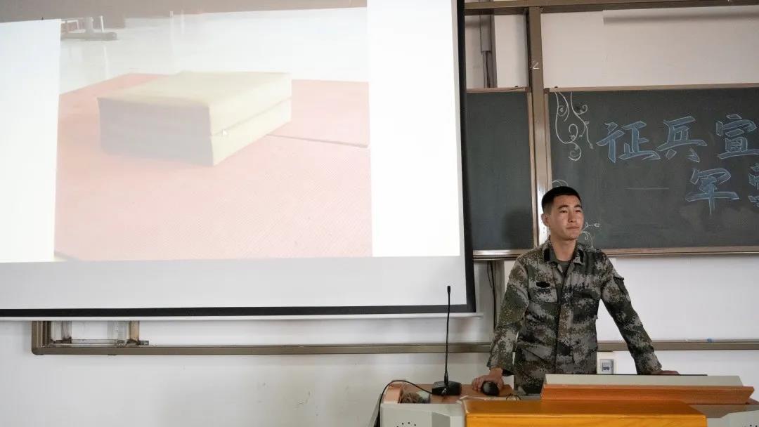 通过观看征兵宣传短片《筑梦青春》和《青春在迷彩军营淬火成钢》,视频以青春追梦为主题,呈现适龄青年参军前后,特别是经受军营磨砺发生的成长变化,诠释了青春由磨砺而出彩、人生因奋斗而升华的思想意境,台下学子观看完这两个宣传片后,纷纷表示受到很大鼓舞。