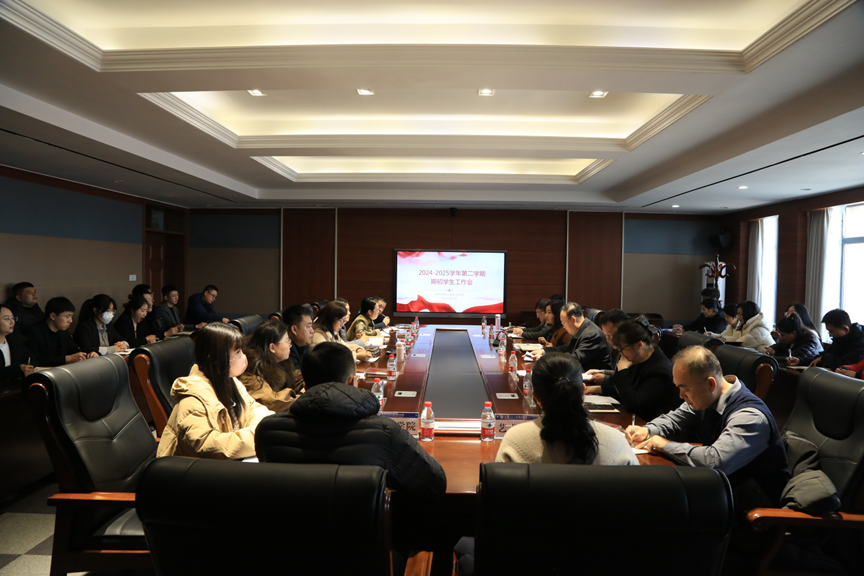 为全面部署新学期学生工作,确保各项工作有序开展,2025年3月5日在综合楼1627召开2024-2025学年第二学期期初学生工作会议,党委副书记李莹、学生工作处、就业创业工作处、校团委、各学院学生工作办公室主任以及全体辅导员老师参加本次会议,会议由学生工作处处长刘丽主持。