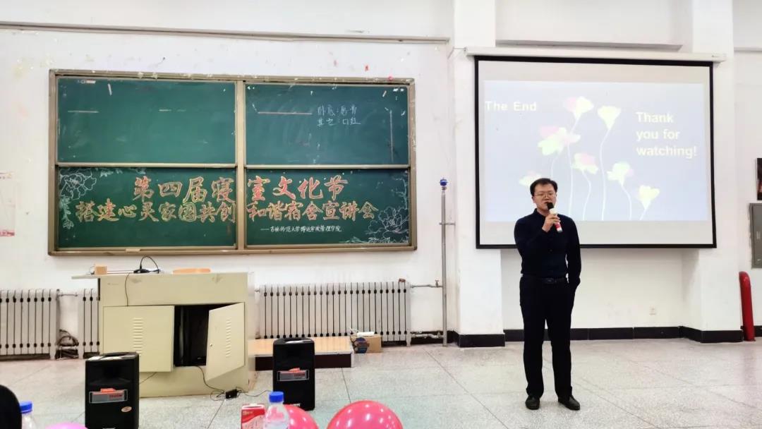 青春的光辉,是理想的钥匙,是梦想的风帆。为弘扬“搭建心灵家园,共创和谐寝室”精神,丰富大一新生校园文化生活,2020年10月7日晚,吉林师范大学博达学院管理学院于3601教室举办第七届寝室文化节。本次活动由2018级学生张子洋、2019级学生邱博雅主持。出席本次新生寝室文化节的有管理学院辅导员罗长佳老师、辅导员魏文净老师、管理学院学生干部以及2020级全体学生。