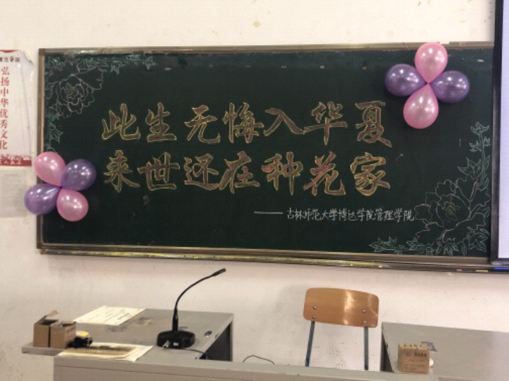 为庆祝建国70周年华诞,回忆建国以来的风雨历程,赞扬伟大的祖国,2019年11月13日下午,吉林师范大学博达学院管理学院学生会文语部举办的“此生无悔入华夏,来世还在种花家”演讲大赛于3520教室如期举办,出席本次活动的嘉宾有管理学院学生会主席汪博、学生会副主席王苏康和张晓佳、社联副主席陈睿、新闻部部长吕烁杰、生活部部长王维新及2019级大一学生,董泽宇和吕昕阳主持本次大赛。
