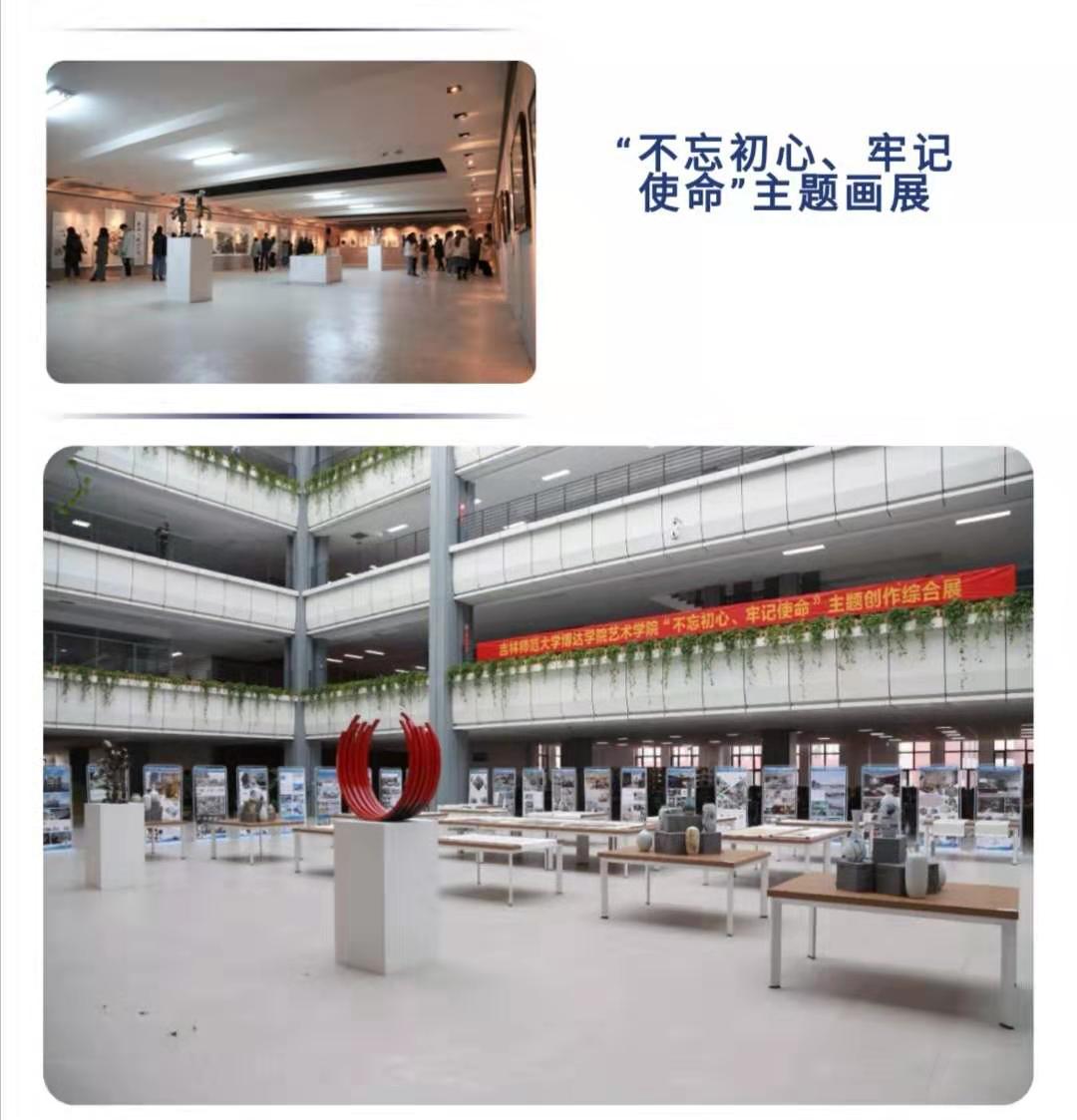 “不忘初心、牢记使命”主题画展共展出艺术学院2020届157名毕业生作品,学生遵循“不忘初心、牢记使命”的主旨,结合专业技能,以水彩、油画、雕塑、国画、视觉传达设计以及环境设计等不同风格作品致敬新时代。每一幅画追求极致的炫美和艺术感,寄托深情和期盼,立体地展示了建国七十周年的沧桑巨变和伟大成就。时代在改变,但是对党的追求和忠诚不变。