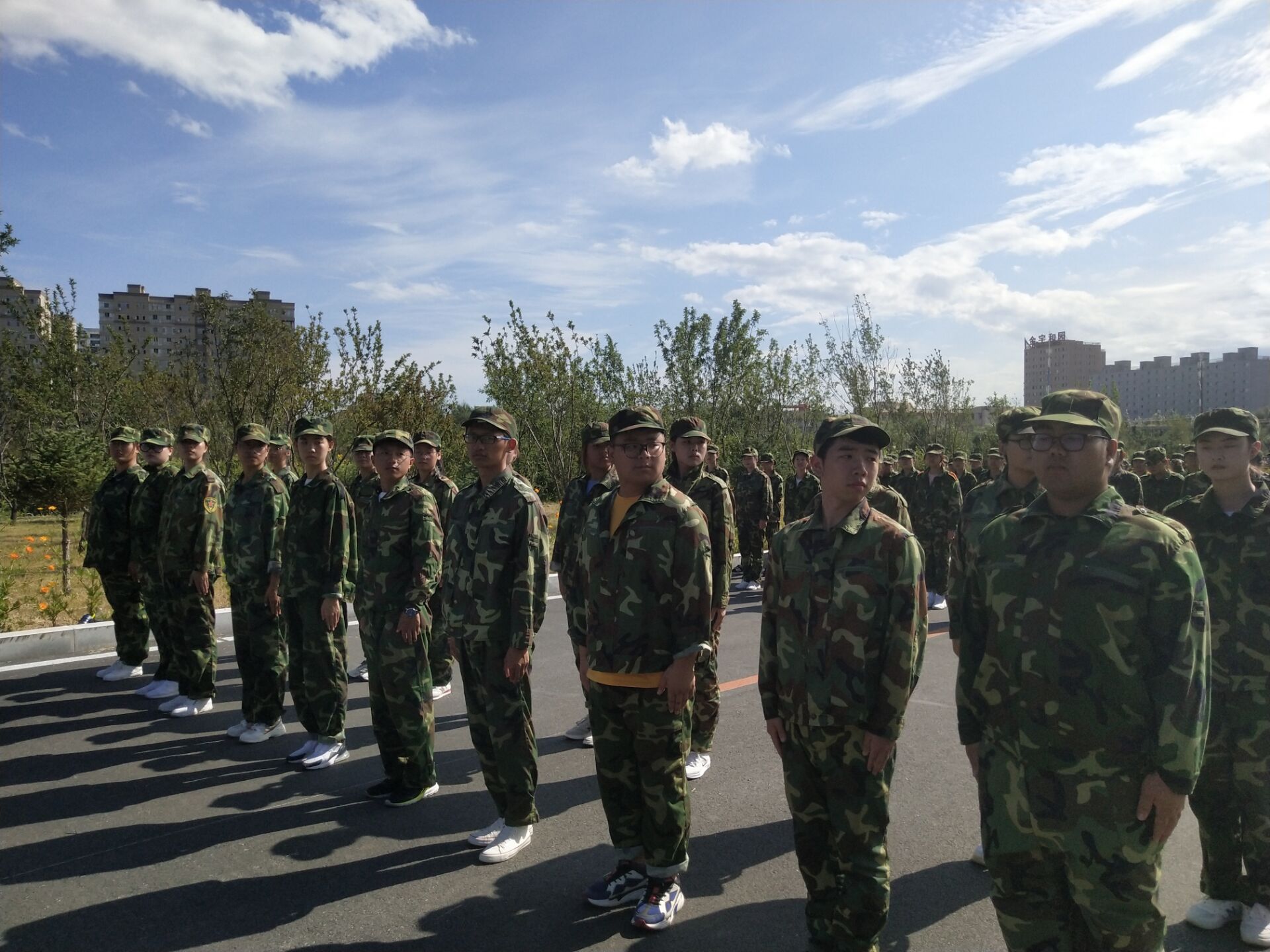 为期十天的军训在吉林师范大学博达学院全面拉开序幕。军训可以让刚成为大学生的他们去除惰性,强化意志,同时也可以让他们对生活有新的改观。骄阳似火的天气为同学们的训练增加了不少的阻力,但同学们依然精神饱满地准时来到训练场地集合,自觉的维持军姿站立等待教官的指示。训练中,豆大的汗水滚过同学们被晒红的面颊,教官们的嗓音微微嘶哑。为了保证队伍的整齐和队列动作的标准,无论是教官还是同学都没有一丝懈怠的想法,“立正,稍息,敬礼,转身,踏步走……”同学们都努力的做好每一步,最难能可贵的就是一种对自我的约束,不随便逾规踏矩,要做自己该做的事。