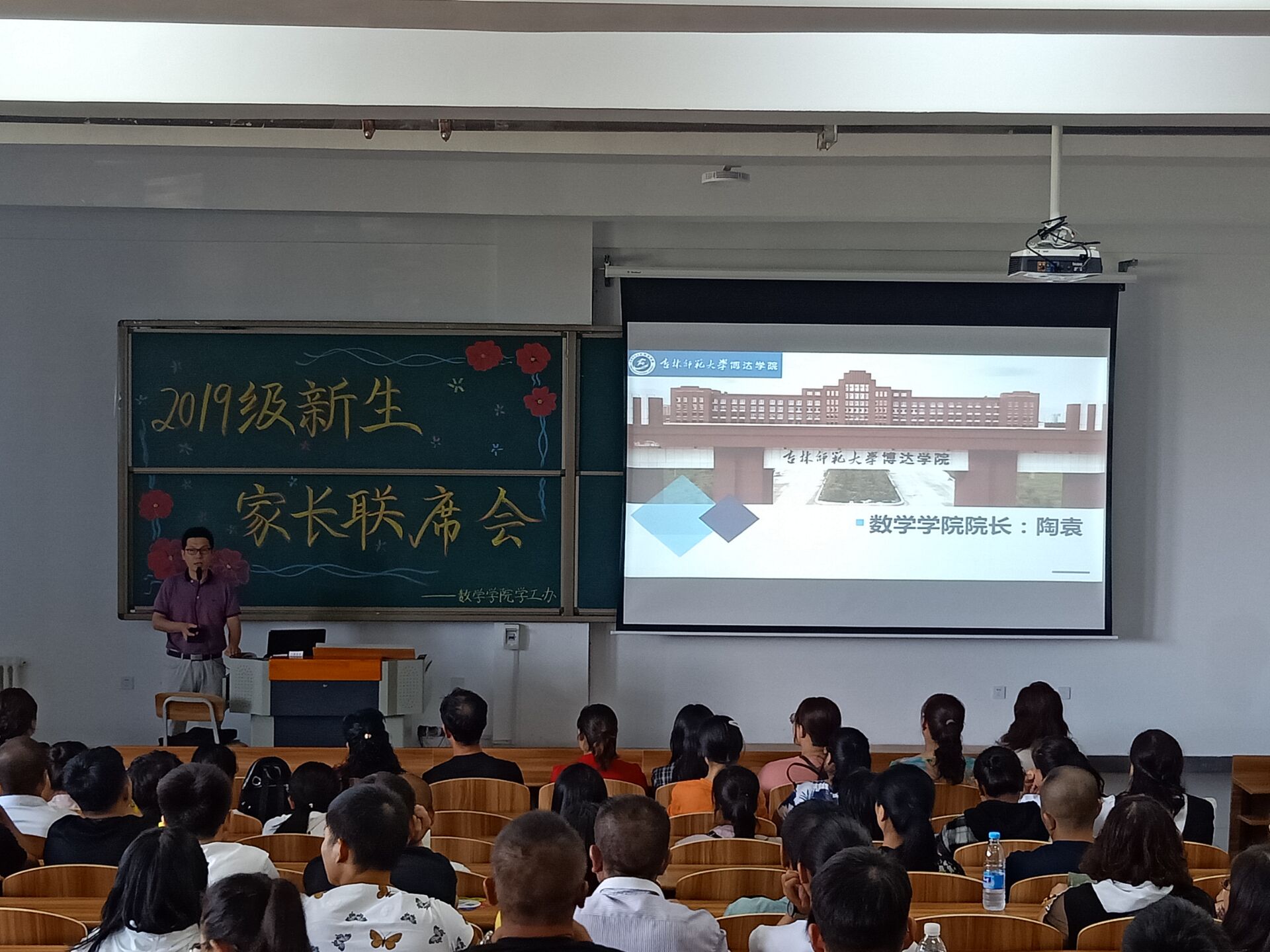 为了加强学校与家长的沟通,增进家长对学校发展状况及专业建设的了解。吉林师范大学博达学院数学学院于8月24日下午14:30在综合楼1118教室举行了2019级新生家长联席会。参加此次会议的有数学学院院长陶袁,学工办主任常秀云,辅导员高泽和2019级同学的家长。