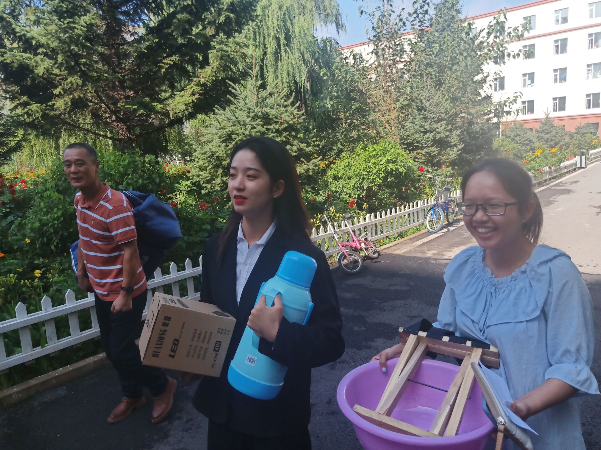 迎新工作如火如荼,到处都是忙碌的身影。学生会的学长学姐们耐心地回答了家长新生提出的各种问题。学长学姐们主动帮助新同学拿行李,热情的带领新同学了解我校的环境,人头攒动,秩序井然。