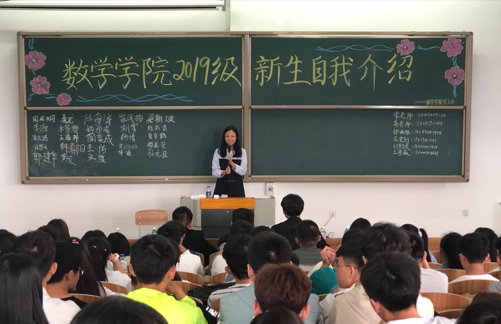 为了使新同学尽快适应大学生活,更好的融入数学学院这个大家庭。8月26日上午8:00我院于综合楼1112教室举行了新生自我介绍大会, 参加本次大会的有辅导员老师高泽和2019级同学。