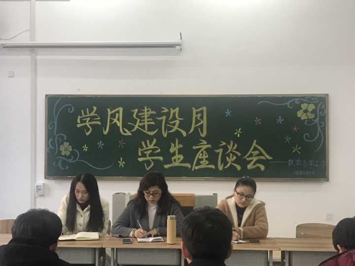 为进一步加强我系学生管理,完善教学环境,增强优良学风,我系学工办于2018年11月14日下午15:30在1108教室举行了“学风建设月——学生座谈会”,出席此次座谈会的为学工办主任常秀云老师和辅导员郭莉丽老师、郑鑫老师及16.17.18级学生代表。