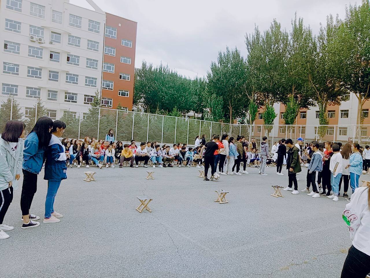 操场上人潮涌动,每个同学都摩拳擦掌的想要加入到自己喜欢的游戏中去,首先进行的是转圈过桩,比赛开始后同学们都你追我赶不甘落后,都想要获得胜利,现场气氛异常激烈,旁边的同学充当啦啦队为他们加油、喝彩。随后,文艺部的学长学姐们为大家准备了一段韵味十足的舞蹈表演,博得满场喝彩。接下来是保龄球,这个游戏讲究团队合作,要求同学们团结一致,不仅加强了同学之间的默契,还体现了同学之间的包容。之后,由文艺部的付璐学姐为大家带来了一首歌曲,学长弹唱了一首自编曲目。接下来是我爱接歌词,同学们都争先恐后地抢答,个个都是中华小区库。最后一项是拔河,在拔河比赛中,同学们为了取得胜利用了九牛二虎之力,都咬紧牙关奋力一搏。这个比赛体现了同学们的班级荣誉感。此次活动秉持着友谊第一比赛第二的原则,既增加了同学之间的了解,又增强了班级内部的凝聚力。同学之间既有配合又有竞争。让同学们增深了彼此间的感情,班级与班级之间的比拼让我们有了广泛的交流空间,为我们成长拓宽了道路,每个同学都参与其中,体验了比赛中的乐趣。