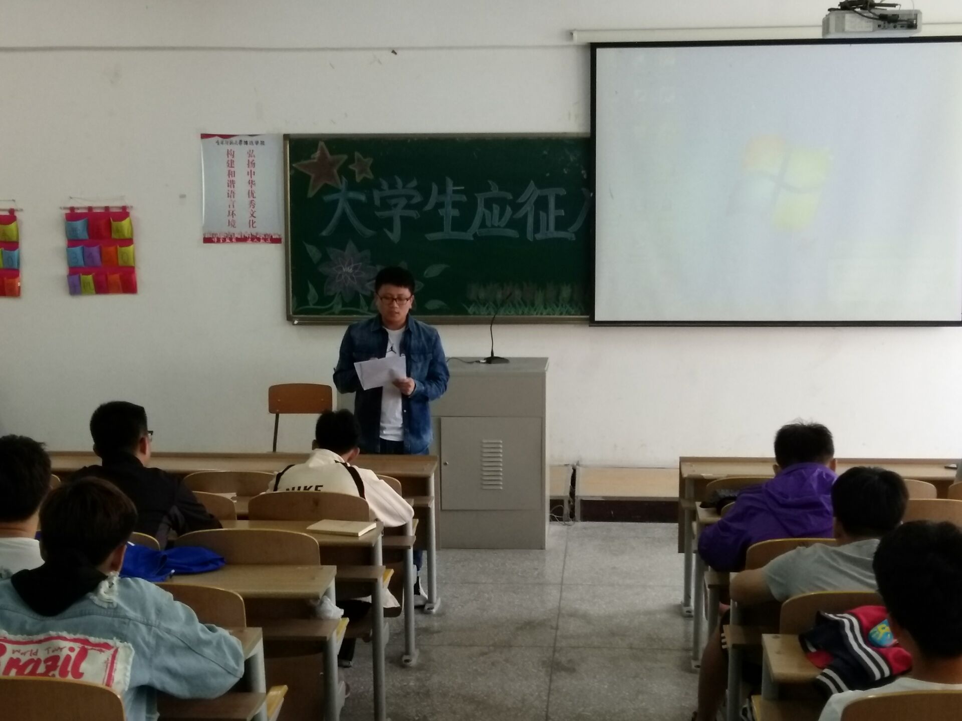 最后,王老师进一步阐述了大学生入伍的重要意义,并简要介绍了入伍学生最为关心的学业方面的有关规定。此次政策宣讲及动员会,使同学们了解了当前关于大学生服兵役的相关政策,同时为日后兵役登记,应征入伍等工作的顺利进行奠定了基础。