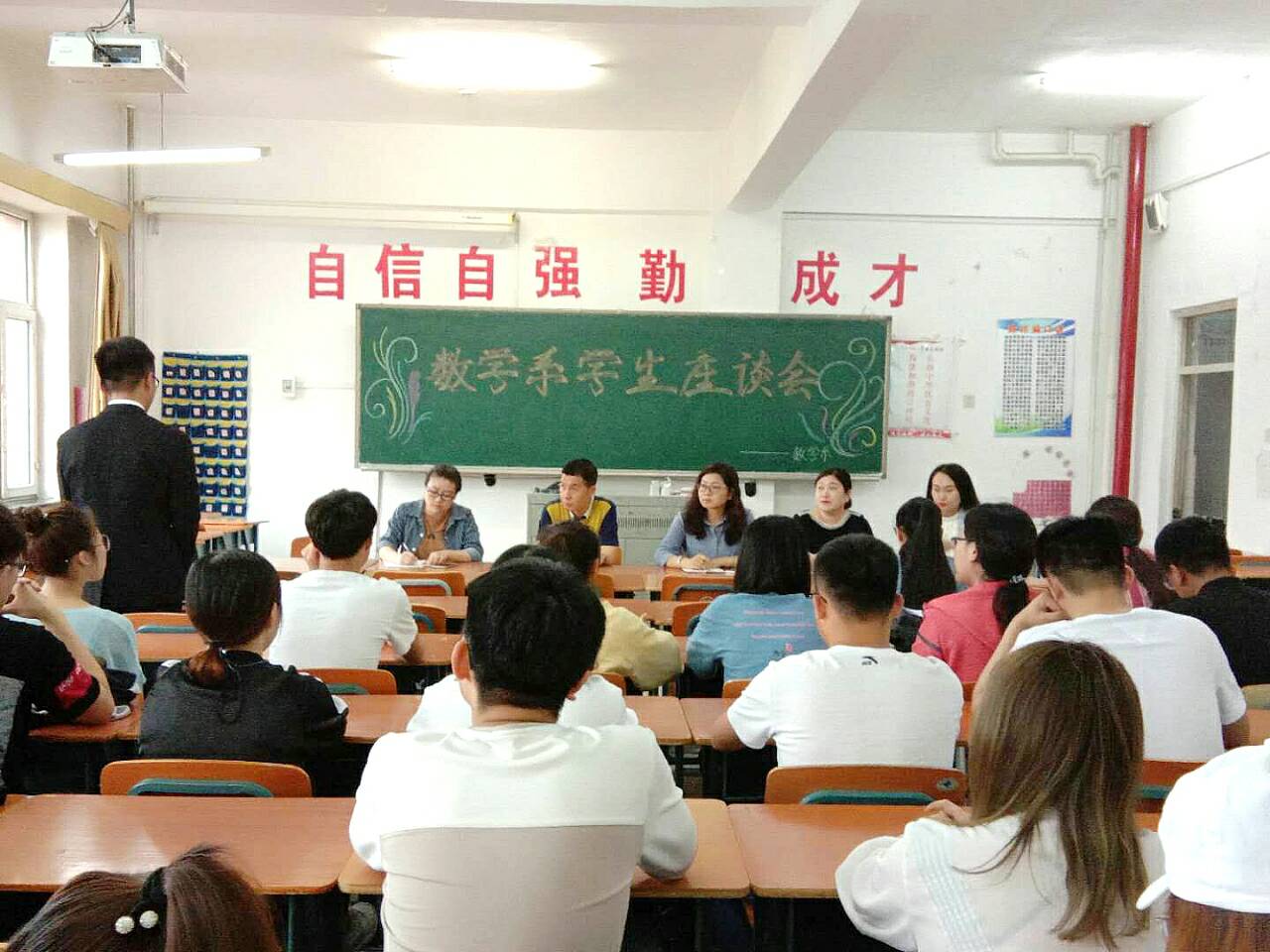 为提高教师的教学质量、更好的了解学生的学习情况,我系于2018年5月16日14:00在1509教室召开了期中教学学生座谈会,出席本次会议的有:我系教学副主任陶袁老师、学工办主任常秀云老师、辅导员郭丽莉老师、秘书处王嘉羚老师及教务处王丽红老师。