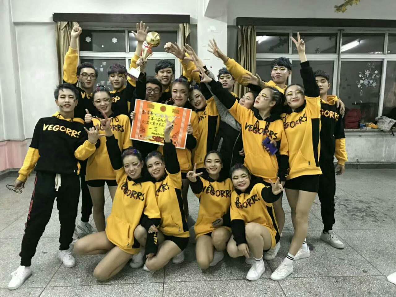 赛前,队员们利用课余时间紧张排练,用汗水和决心弥补专业上的不足,舞台上,队员们凭借着流畅自然的动作,轻盈矫健的舞步,默契的配合,风格多变的舞风,时刚时柔的节奏与旋律,为现场观众带来了一场视觉与听觉的饕鬄盛宴,呐喊声、欢呼声此起彼伏,气氛异常火热。最终为我系赢得了一等奖的殊荣!