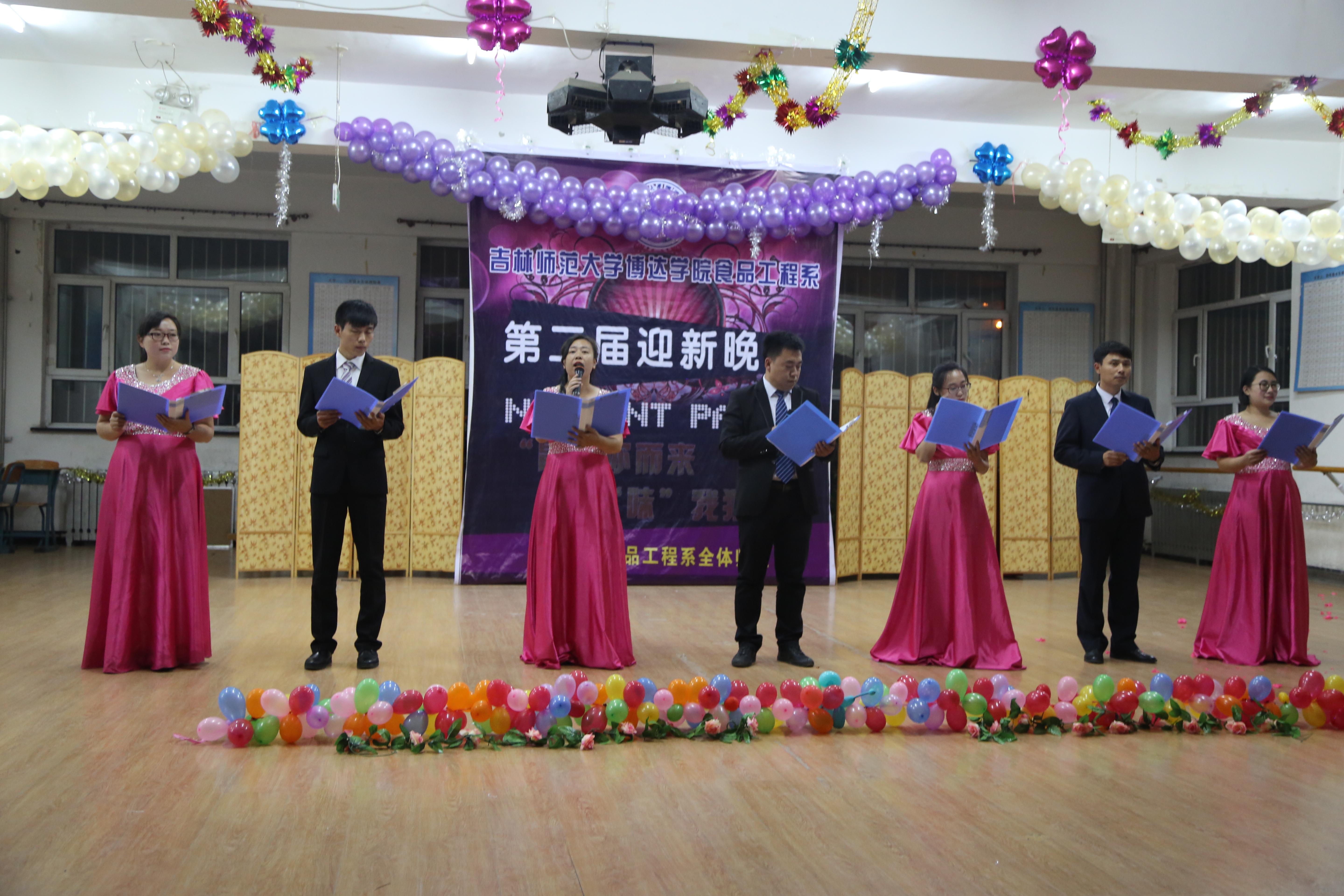 吉林师范大学博达学院食品工程系于9月29日晚6点在第三教学楼健美操馆举办第二届迎新晚会,本次晚会一席四旨,既是国庆兼中秋的佳节欢庆,也是欢迎领导来宾莅临,检验食品工程系学子技能本领的盛宴。