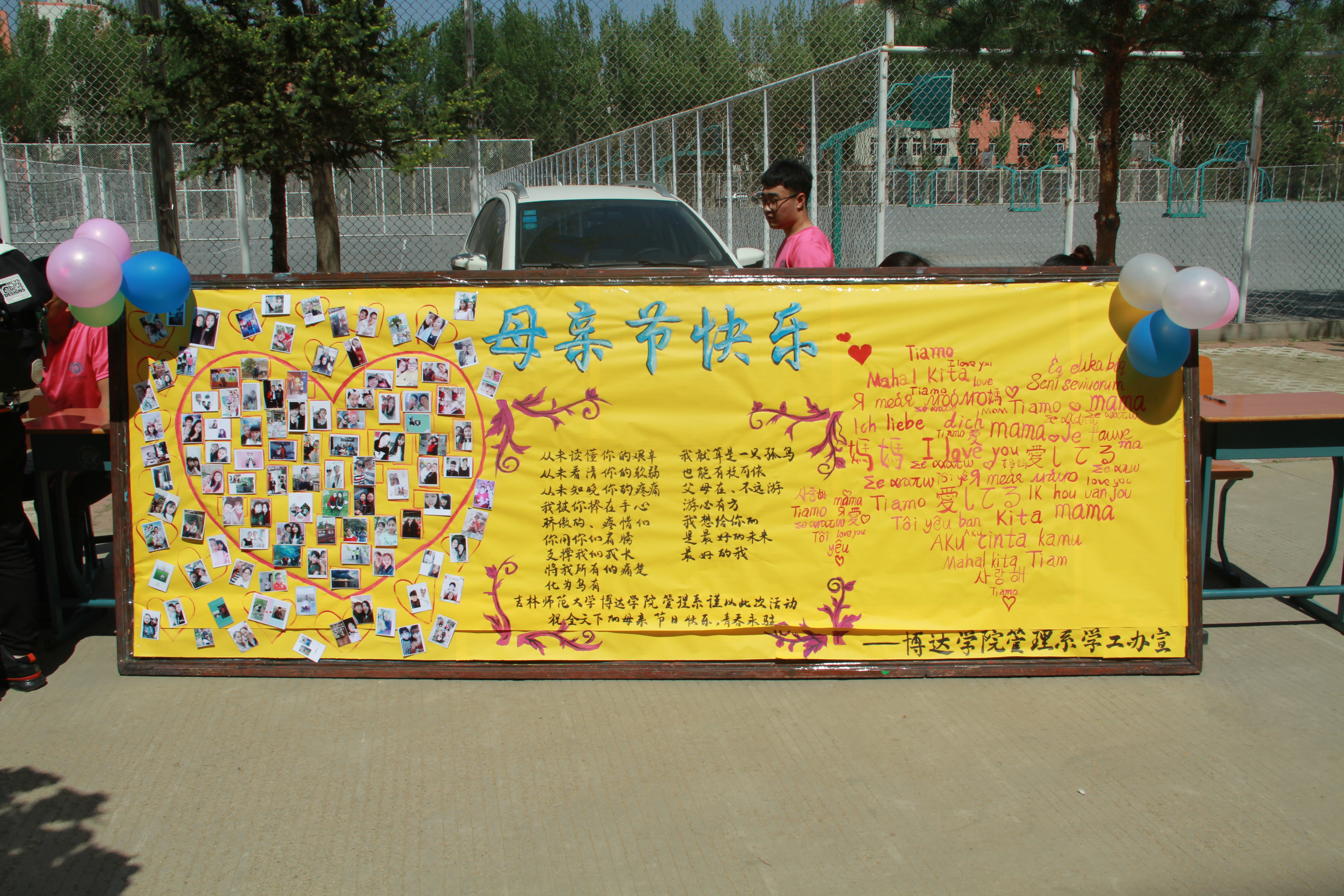 时间都去哪了,还没好好感受,她们就变老了。时过经年,又是一度母亲节,吉林师范大学博达学院管理系学生会宣传部于5月11日13:00在一教门前举行“情系五月,寄心母爱”活动。怀揣着对母爱的感恩,同学们纷至沓来。