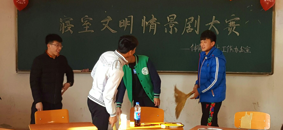 2016年12月7日下午,在博达学院第一教学楼1417教室举办“寝室文明情景剧”。到场嘉宾有体育系学生工办尹茹老师以及2016级各班班代。