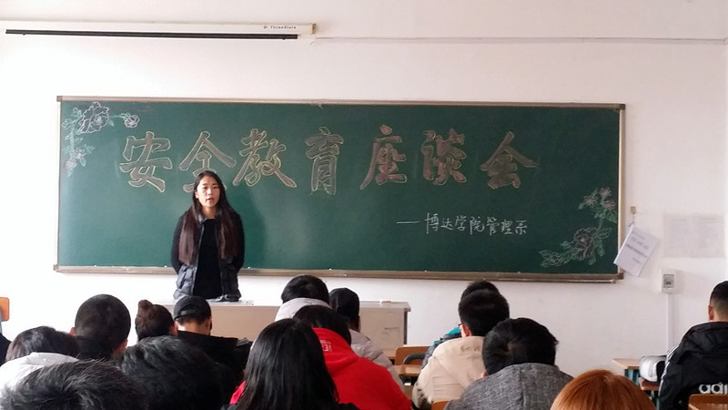 为了提高同学们的安全意识,2016年12月5日,博达学院管理系于12:00在3504教室开展了大学生安全教育座谈会,黄春悦老师率15级各班班长、生活班长以及团支书参加了此次会议。