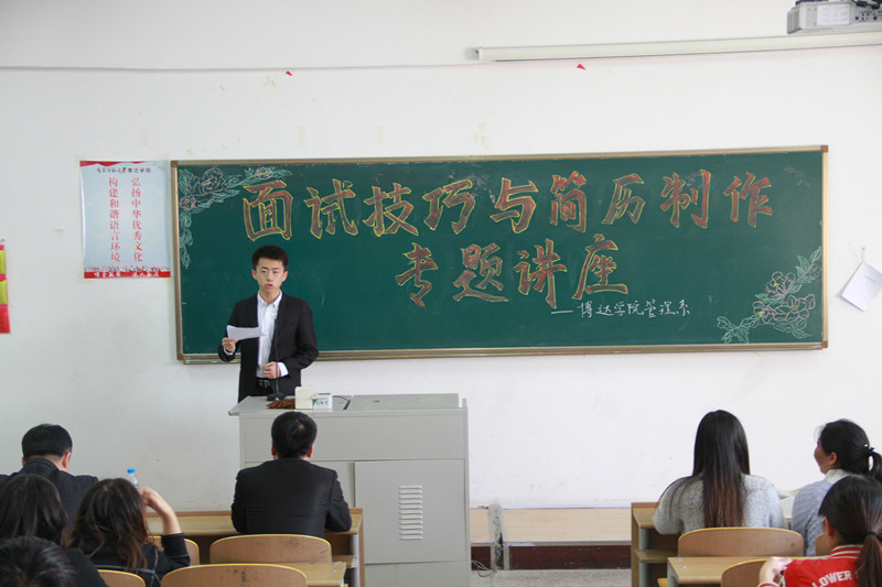 为提高毕业生面试成功率,解答疑虑,2016年4月20日下午3:30分,博达学院管理系于3420教室举办“技巧与简历制作专题讲座”,管理系辅导员老师以及大三学生参加了此次讲座。