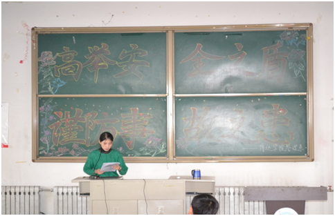 为加强学生的安全意识,2015年10月29日中午12:30分,博达学院管理系以“高举安全之盾,谨慎事故之患”为题,面向大一新生进行一次安全知识讲座,王钰冲老师为此次讲座的主讲。