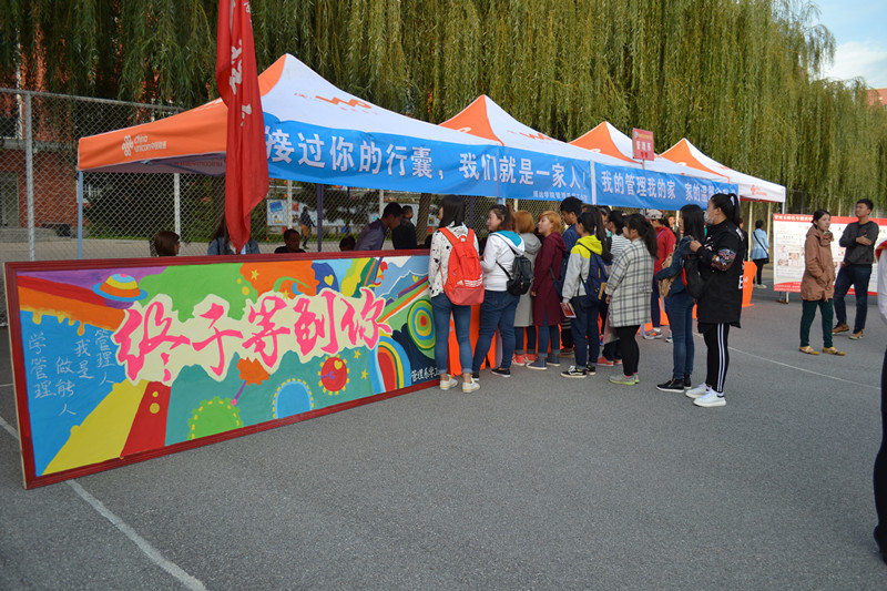 我系秉承全心全意为新生及家长服务的宗旨,在迎新现场设立接站引导、新生注册、宿舍分配、资料发放、绿色通道、档案接收以及专业咨询等工作点,保证新生报到工作无停留、无滞后、无遗漏。同时,由学生干部组成志愿者服务队伍,统一着装,坚持“一对一”引领新生及家长办理注册手续和宿舍入住,高效顺利的完成迎新工作。此外,我系展出“课前十分钟,专业更轻松”活动展板,使管理系成为全院迎新现场一道亮丽的风景线。
