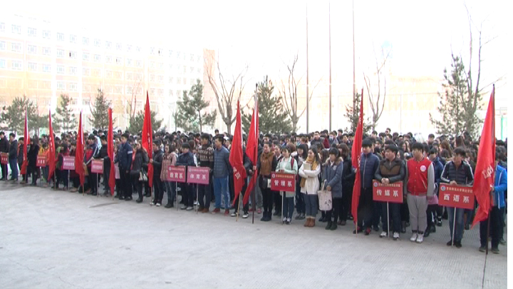 学生代表高晓庆、杨智源分别宣读了倡议书和承诺书。