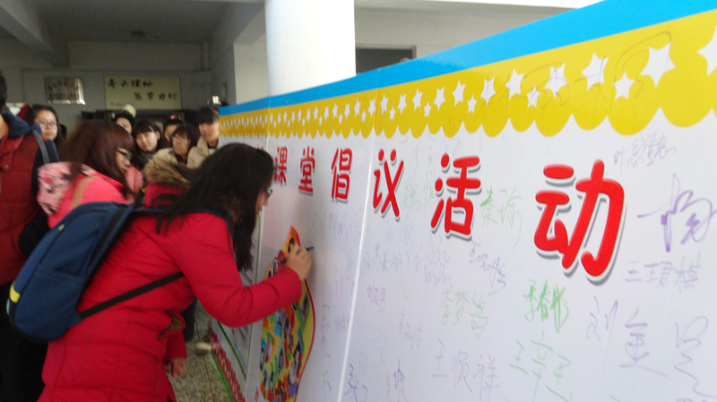 为进一步推进“文明课堂”建设,提升同学们的听课效率。2014年12月9日,吉林师范大学博达学院管理系在第一教学楼内发起“无手机课堂”签名活动,活动倡导学生上课自觉关闭手机或不带手机,把宁静还给课堂,提高听课效率,维持良好的课堂教学秩序,营造浓郁的学习氛围。