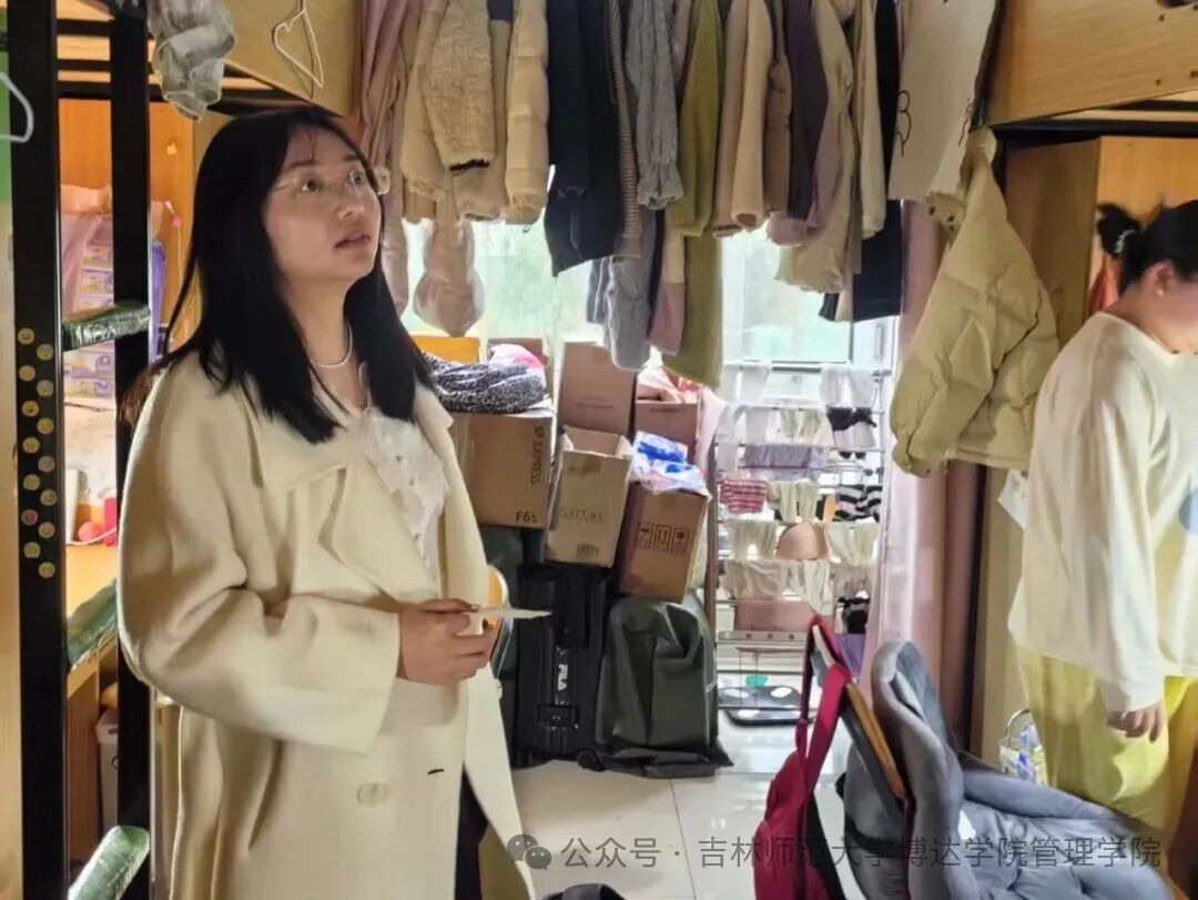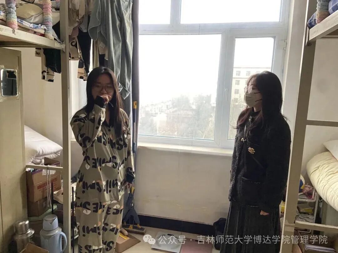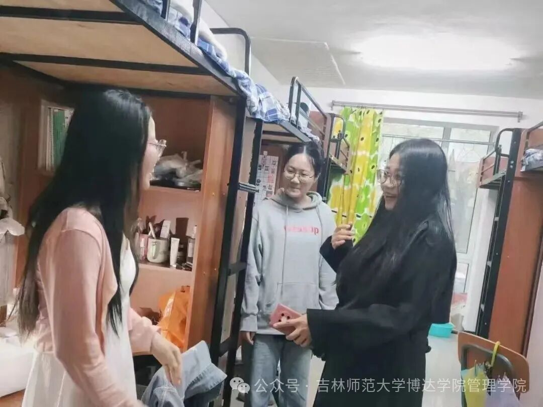 为深化学风建设、营造“学习有序、生活有规”的寝室氛围,2025年11月13日,吉林师范大学博达学院管理学院组织开展了寝室学风与安全联合走访排查工作。管理学院学工办主任董莹老师、新生辅导员贾琼老师、辅导员张静老师、辅导员赵洋老师,以及舍务部学生干部共同参与。本次工作以“安全兜底、学风提质”为核心,切实将学风引导与安全管理落实到每一间寝室。