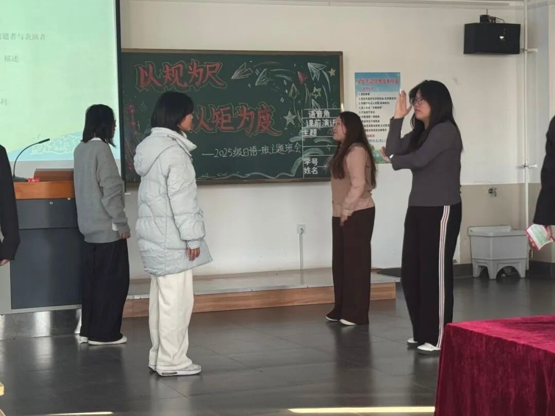 规矩是青春的航标,自律是成长的阶梯。外国语学院2025级“没有规矩,不成方圆”主题班会圆满落下帷幕。本次活动不仅深化了同学们对规矩与自律的认知,更将遵规守纪的意识内化于心、外化于行。这份对规则的敬畏与恪守,必将成为同学们未来立身行己、明德笃行的坚实基石。未来,外国语学院将持续推进规矩教育,引导同学们在青春航程中以自律为舵,以规矩为帆,知所趋、知所避,共同驶向行稳致远的明天!
