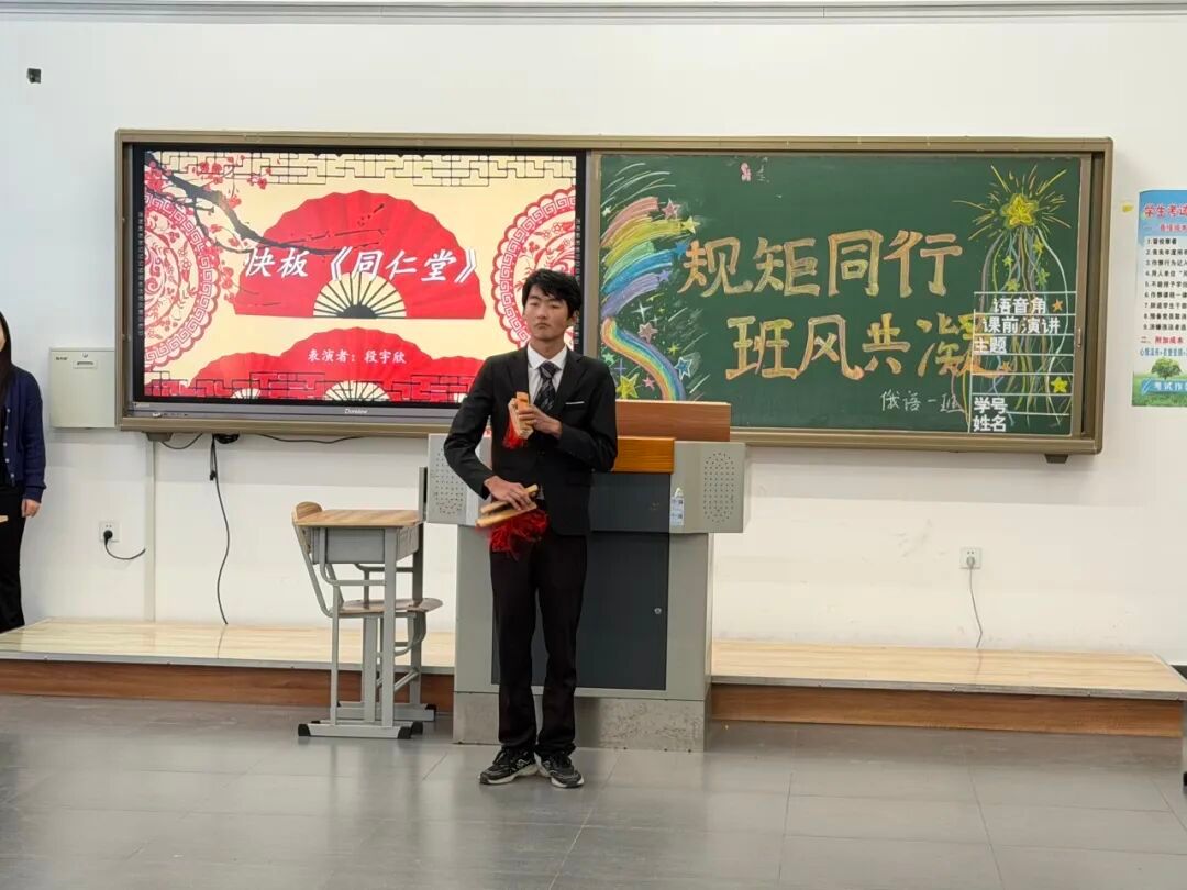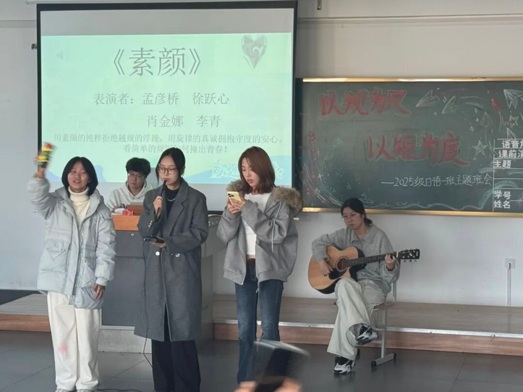 青春不逾矩,扬帆亦有准绳。为引导外国语学院学子懂规矩、讲纪律,将“没有规矩,不成方圆”的传统智慧内化为抓学风、重养成的行动自觉,2025级各班于十月中旬集中组织开展了“规矩与成长”主题班会。各班积极创新形式,通过“规矩情景剧”“秩序思辨会”等互动环节,引导学生在参与中思辨,在共鸣中感悟,深刻体会规则之美、秩序之重。活动还特邀各年级辅导员走进班级,与同学们面对面探讨“规矩”与“自由”的辩证关系,共同为青春航程校准方向、点亮引路明灯。