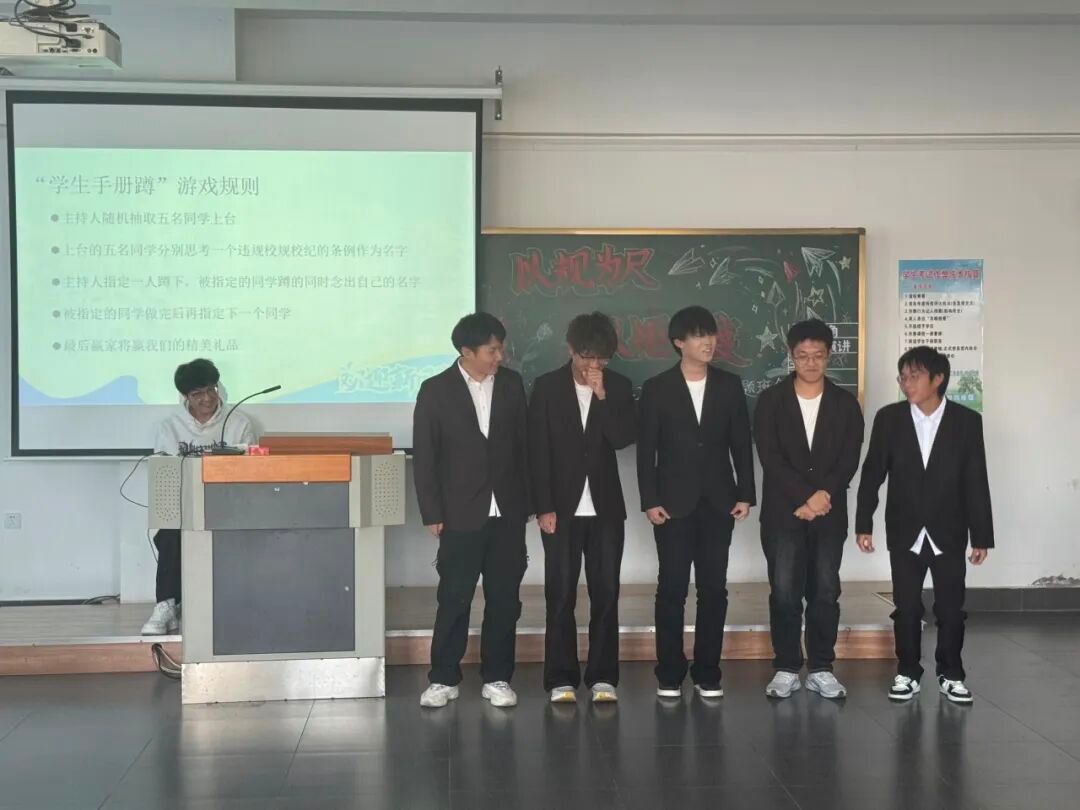 班会在主持人的开场中徐徐展开,嘉宾、流程与规则被清晰阐明。活动伊始,2025级同学们便以精彩的串场表演率先暖场。随后的游戏环节更是点睛之笔,同学们在遵守规则中体会秩序之美,在团队协作中感受同窗之谊,真正将“没有规矩,不成方圆”的古训内化于心,班级的向心力也随之升华。