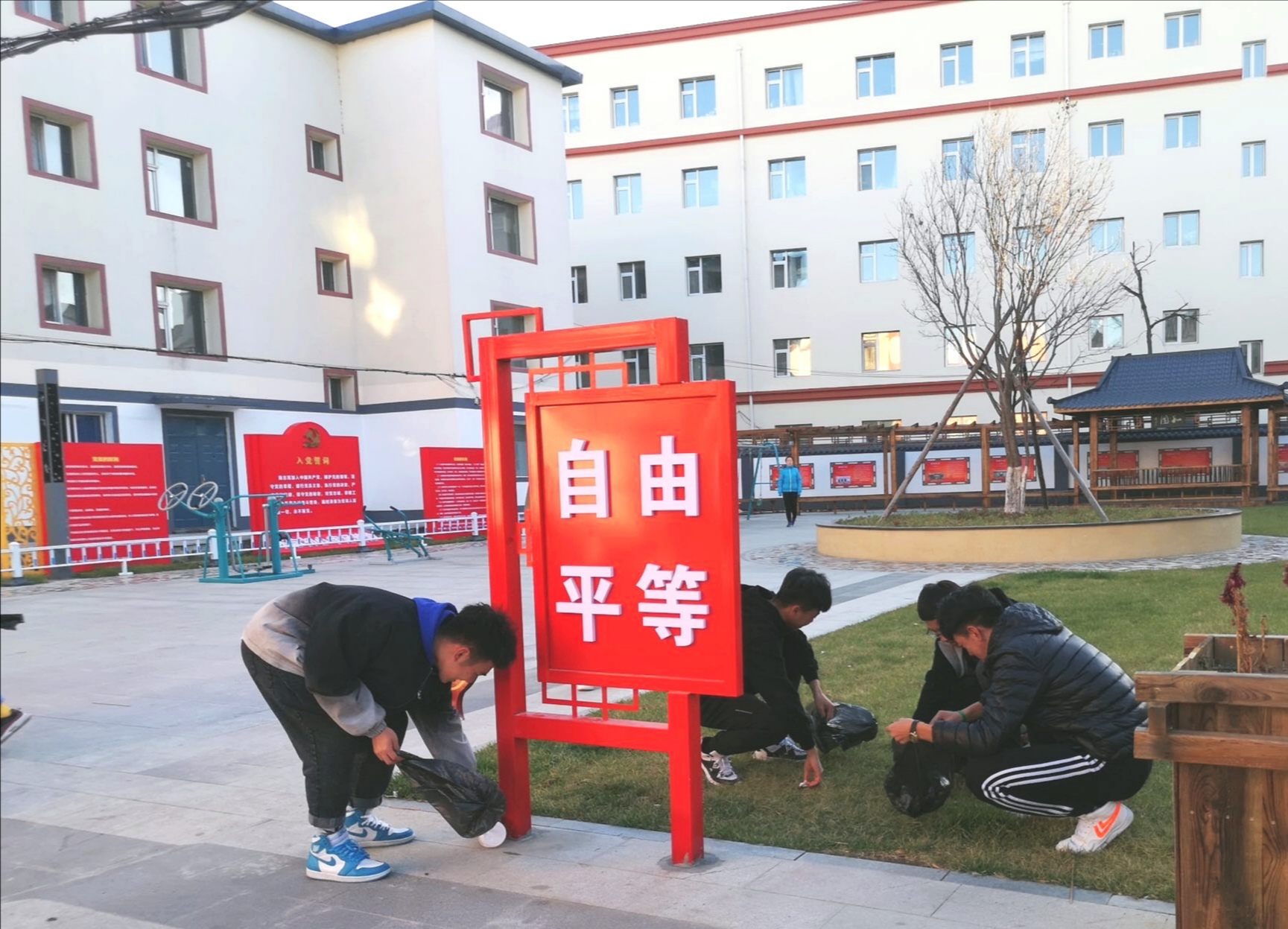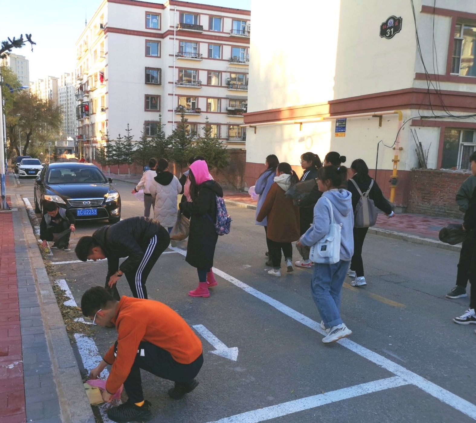 同学们来到社区,对沿街散落的白色垃圾、食品包装袋、生活垃圾等进行清理。他们分工明确,有的割路边杂草,清除卫生死角,捡拾垃圾和落叶,有的拿起铲子清理地上残留的砖头、瓷片,他们手持夹钳、垃圾带等工具,将各种垃圾清除得一干二净,通过大家的辛勤劳动,周围的环境面貌焕然一新,洁净的街巷在秋日的阳光下重新焕发生机。
