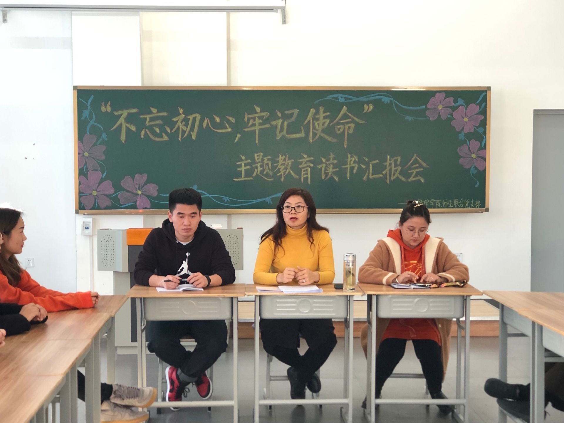 为深入学习贯彻习近平新时代中国特色社会主义思想和党的十九大精神,将“不忘初心,牢记使命”主题教育工作抓好落实。按照学校党委要求,2019年10月30日,吉林师范大学博达学院数学学院师生联合党支部在综合楼1101教室召开读书汇报会。参加本次会议的有数学学院师生联合党支部书记常秀云老师以及全体党员。
