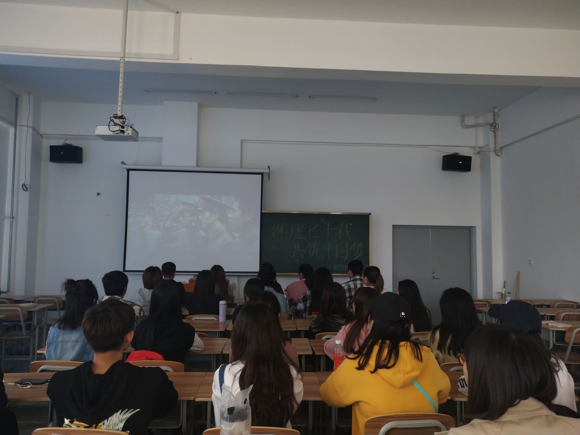 风雨兼程七十载,初心依旧话时代。为了庆祝新中国成立七十周年,2019年9月26日,吉林师范大学博达学院数学学院在综合楼1101教室举行了以“辉煌七十载,共筑中国梦”为主题的观影活动。