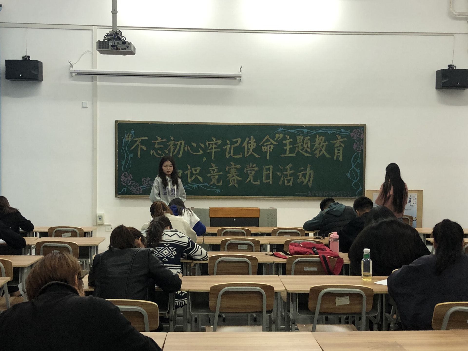 为深入贯彻落实“不忘初心,牢记使命”主题教育,学习习近平新时代中国特色社会主义思想,让入党积极分子更好地了解党的路线、方针、政策,强化入党积极分子对党的政治理论知识的掌握。10月10日晚18:30,吉林师范大学博达学院数学学院在综合楼1108教室开展了“不忘初心,牢记使命”主题教育知识竞赛党日活动。