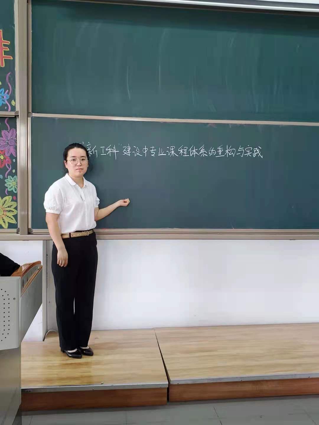 本次活动中,文永芬老师首先讲述了新工科课程建设背景—从20世纪来互联网和IT技术得到广泛普及以来,以人工智能、大数据、云计算等为代表的新技术得到了快速发展。然后分析了新工科专业课程体系重构的重难点包括专业差异性、教师和学生的思维惯性。最后老师讲述了新工科专业课程体系建设的实施策略和实施效果。