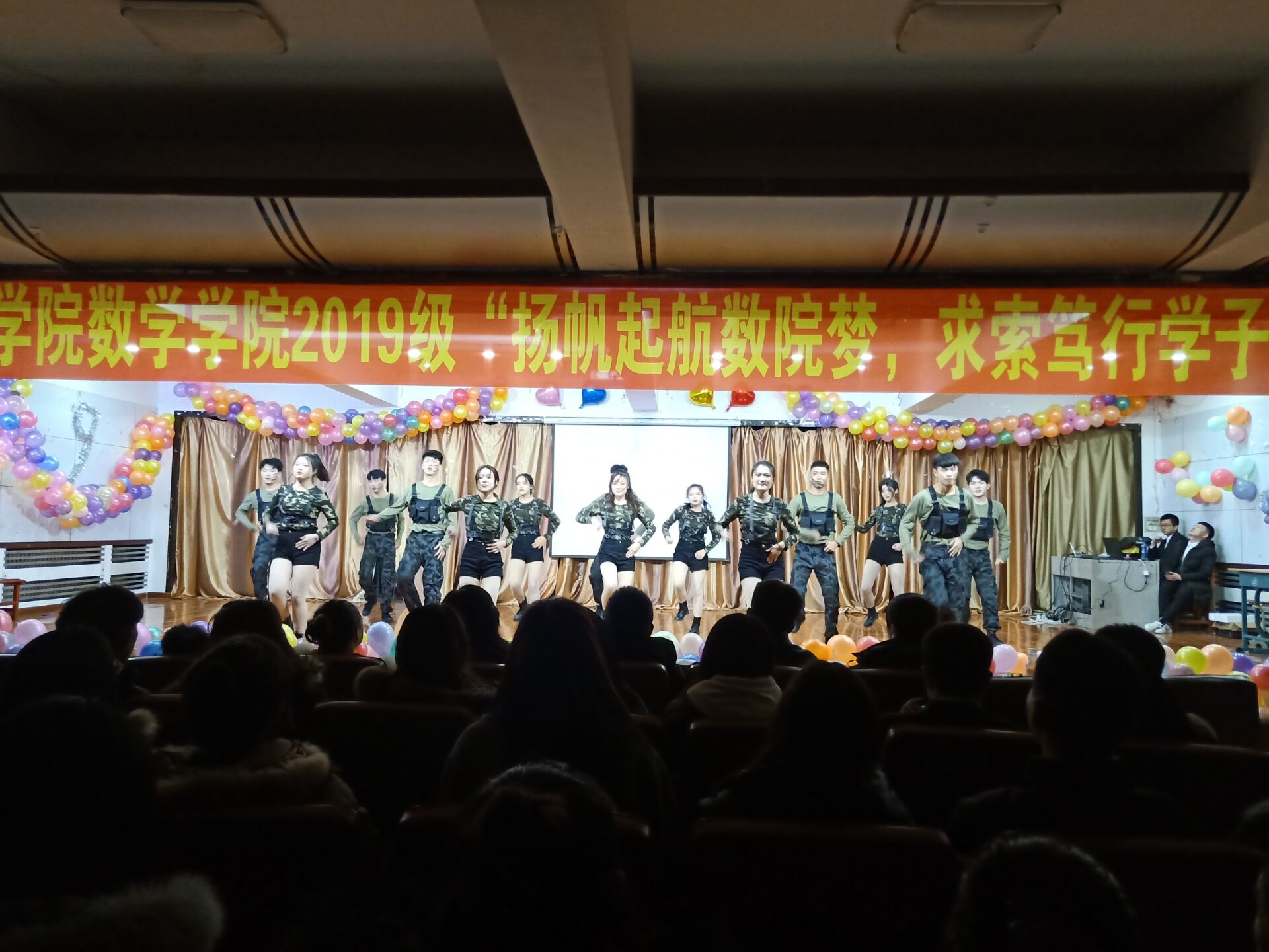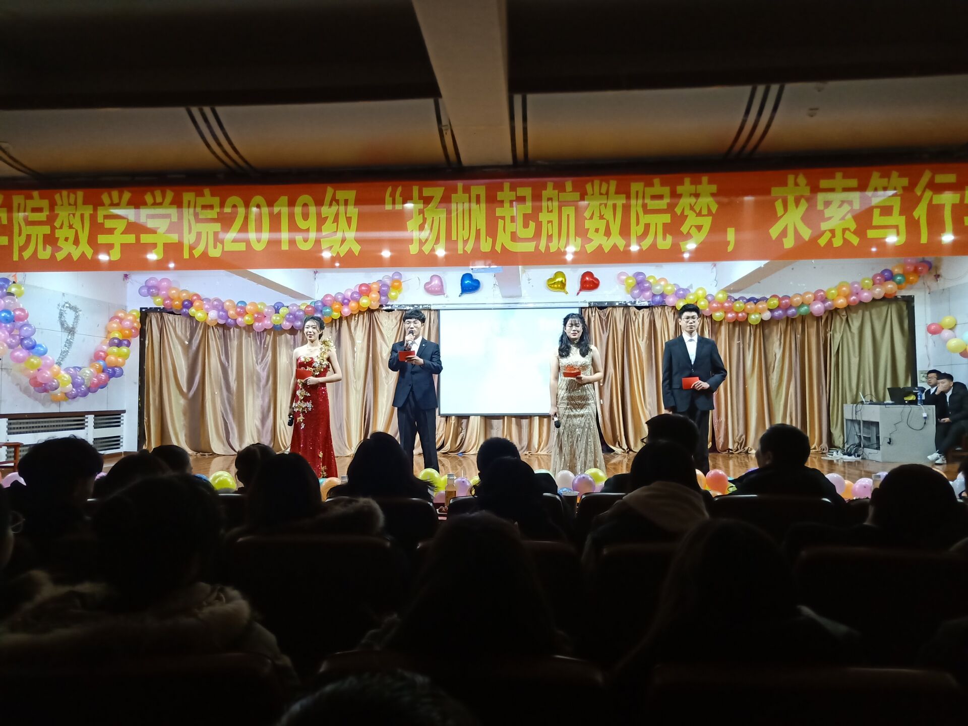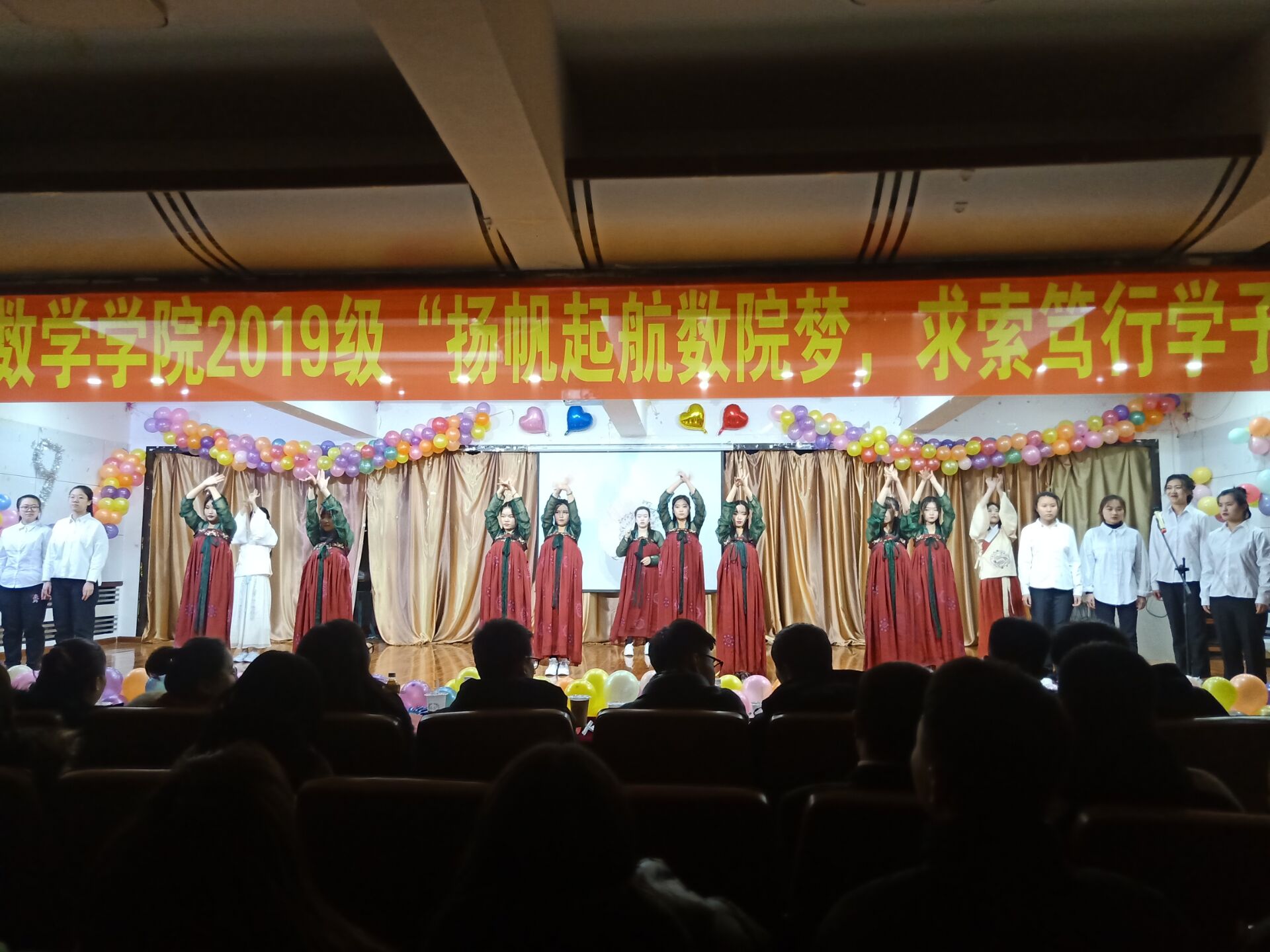 为了丰富校园文化,活跃学习氛围,增强学生凝聚力,帮助2019级同学们更快的融入大学生活,给新同学们一个展示自我风采的舞台。2019年12月6日,数学学院在第二教学楼六楼报告厅举办了“扬帆起航数院梦 求索笃行学子心 ”迎新晚会,在活动中激发同学们的青春活力与集体精神,为崭新的大学生活描下绚丽的一笔。出席本次活动的有数学学院院长陶袁院长,团委书记李重言老师,学工办主任常秀云老师,学前与小学教育学院辅导员崔鑫月老师,数学学院辅导员郑鑫老师、辅导员高泽老师,校团学联学生干部,数学学院全体学生干部和2019级全体同学。