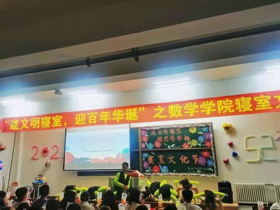 营造和谐寝室,共建文明校园。2021年5月21日晚六点半,由吉林师范大学博达学院数学学院舍务部主办,学生会承办的“建文明寝室,迎百年华诞”之数学学院寝室文化节在1112教室隆重举行。参加活动的有辅导员李东婕老师,辅导员马鹤源老师,学生会主席李可,社联主席赵浩琳,分团委副书记朱思雨,团学联各部长以及20级全体学生。