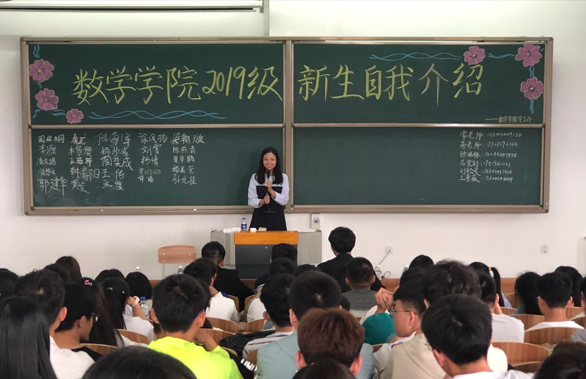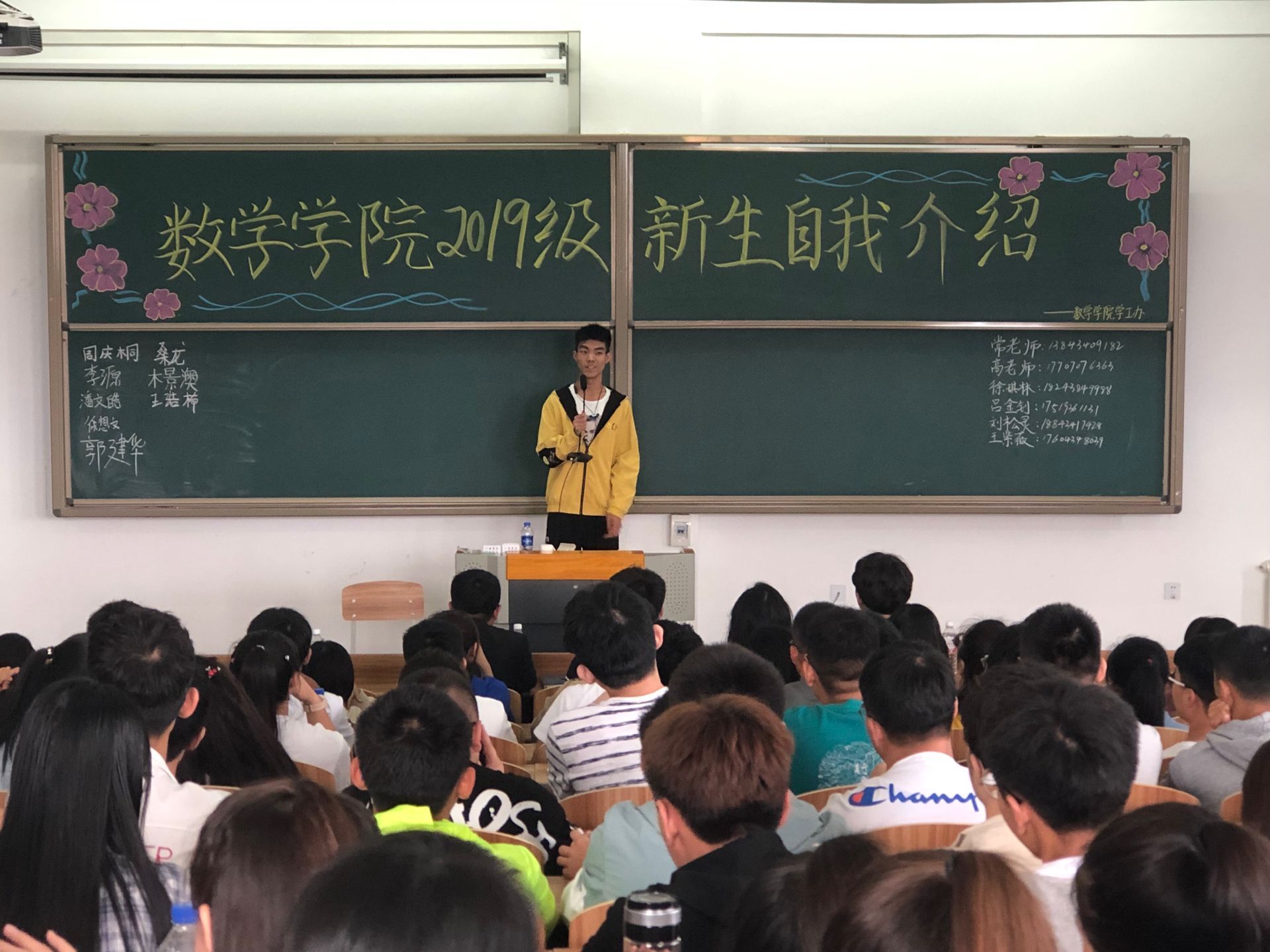 为了使新同学尽快适应大学生活,更好的融入数学学院这个大家庭。8月26日上午8:00我院于综合楼1112教室举行了新生自我介绍大会, 参加本次大会的有辅导员老师高泽和2019级同学。
