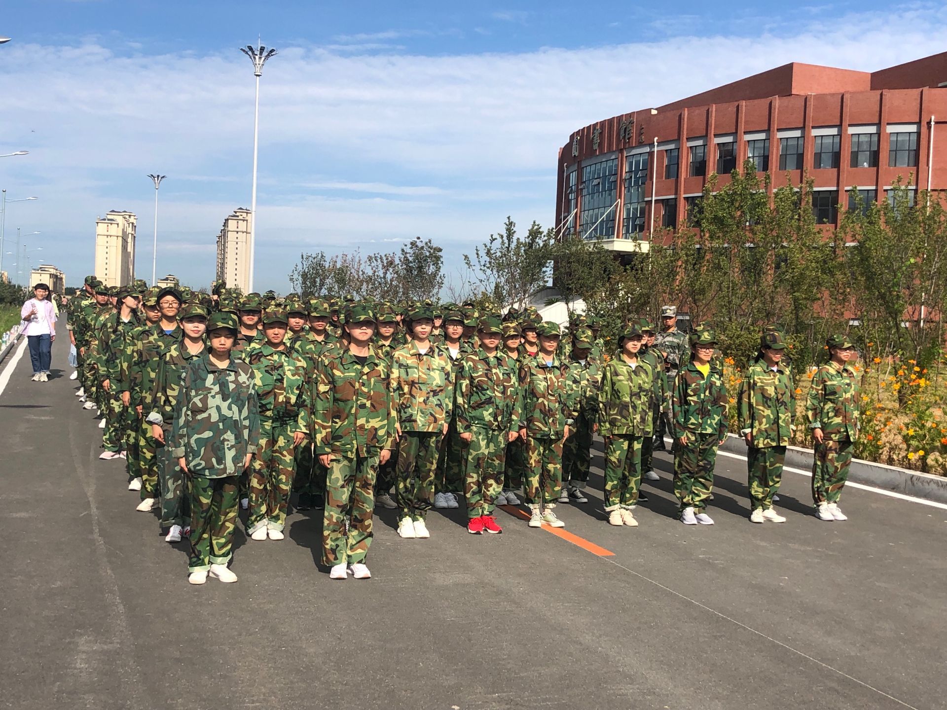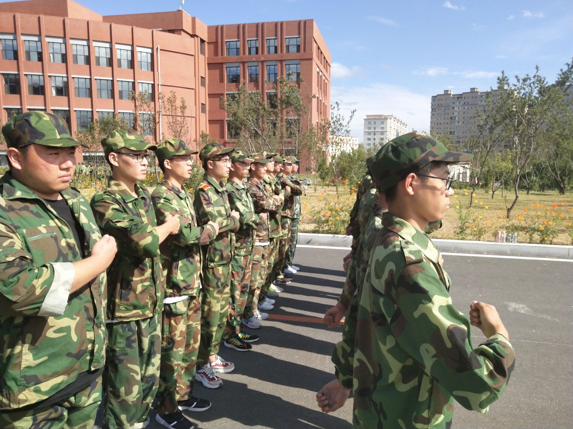 为期十天的军训在吉林师范大学博达学院全面拉开序幕。军训可以让刚成为大学生的他们去除惰性,强化意志,同时也可以让他们对生活有新的改观。骄阳似火的天气为同学们的训练增加了不少的阻力,但同学们依然精神饱满地准时来到训练场地集合,自觉的维持军姿站立等待教官的指示。训练中,豆大的汗水滚过同学们被晒红的面颊,教官们的嗓音微微嘶哑。为了保证队伍的整齐和队列动作的标准,无论是教官还是同学都没有一丝懈怠的想法,“立正,稍息,敬礼,转身,踏步走……”同学们都努力的做好每一步,最难能可贵的就是一种对自我的约束,不随便逾规踏矩,要做自己该做的事。