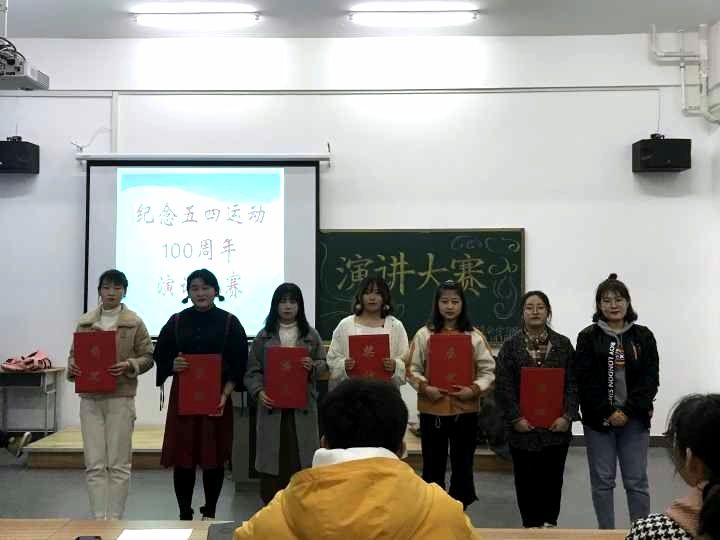 为纪念五四运动100周年,弘扬五四爱国精神,我系于2019年3月7日下午六点三十分,在综合楼1107教室举办了以“纪念五四运动100周年”为主题的演讲比赛。共有12位来自不同班级的同学参加了此次比赛,学生会主席团张迪星、蓝海等学生干部担任评委。