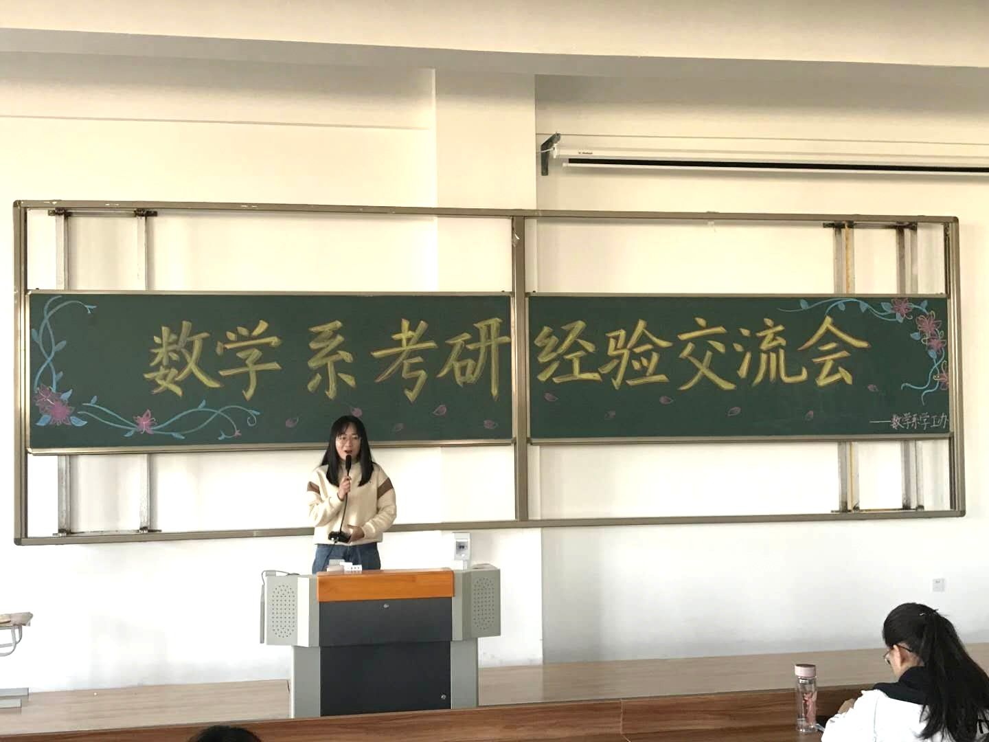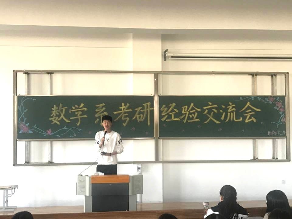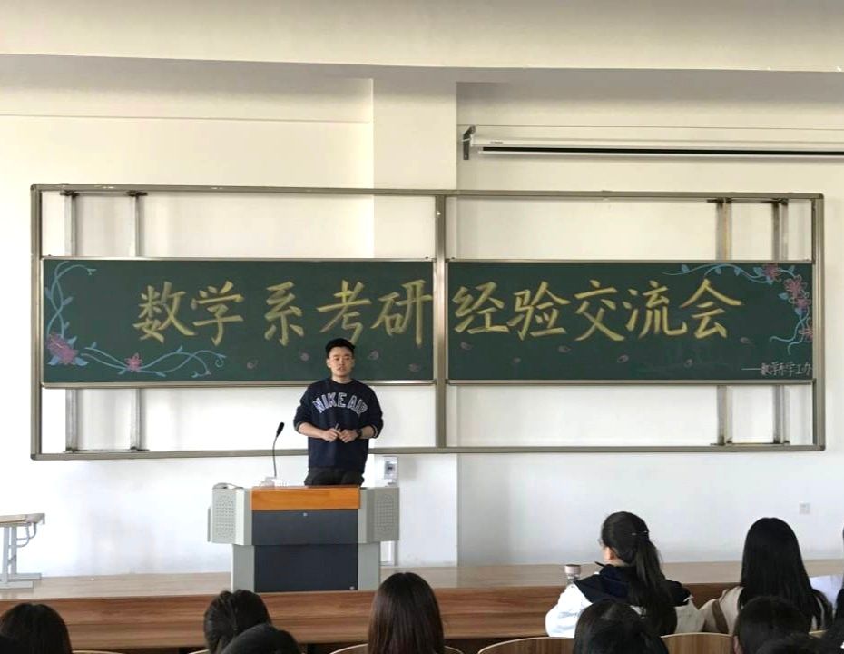 为加强学生对考研知识和经验的了解,营造积极向上的学风。我系于4月26日下午14:00在综合楼1118教室召开了数学系考研经验交流会。参加此次会议的领导有学工办主任常秀云老师、郑鑫老师、刘红娇老师以及15级考研学生代表。