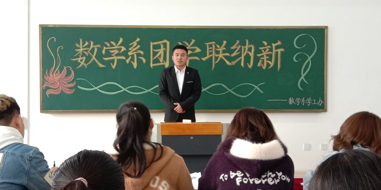 为了给2018级新生提供了一个锻炼自我,展示自我,提升自我的平台,培养我系学生的实践能力和务实精神,同时也为学生干部队伍充实优秀人才。 我系于2019年3月21日和22日下午两点分别在综合楼1103教室和1113 教室进行了数学系团学联纳新活动,数学系学工办主任常秀云老师、学生辅导员郑鑫老师,主席团全体成员以及各部部长参加了此次纳新活动。