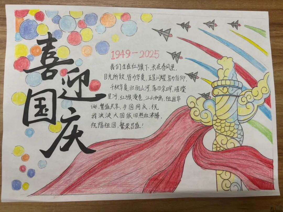 数学学院组织部和宣传部联合举办了“我与祖国共同成长”作品征集活动。七十六载星河长明,我们以手写心,以画寄情——手抄报里工整的字迹,描摹着历史与未来的接力;剪纸中镂刻的祥云牡丹,绽放传统与时代的对话;画卷上晕染的万里山河,流淌着梦想与家国的合唱。