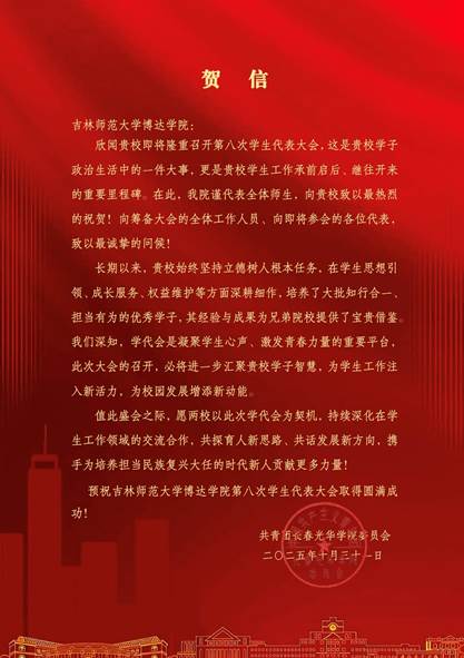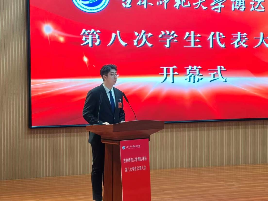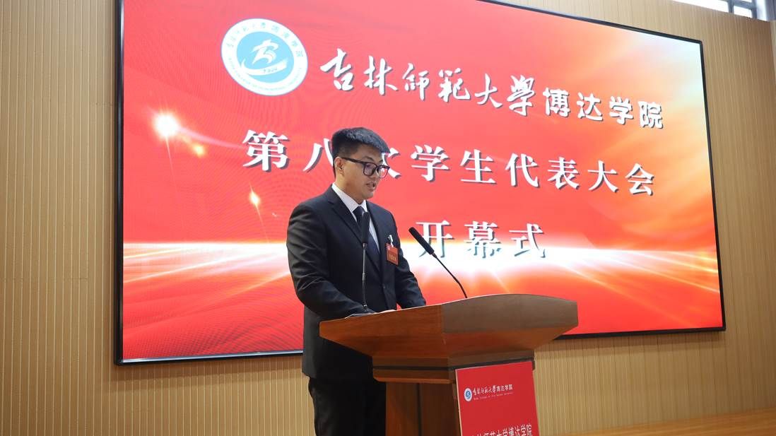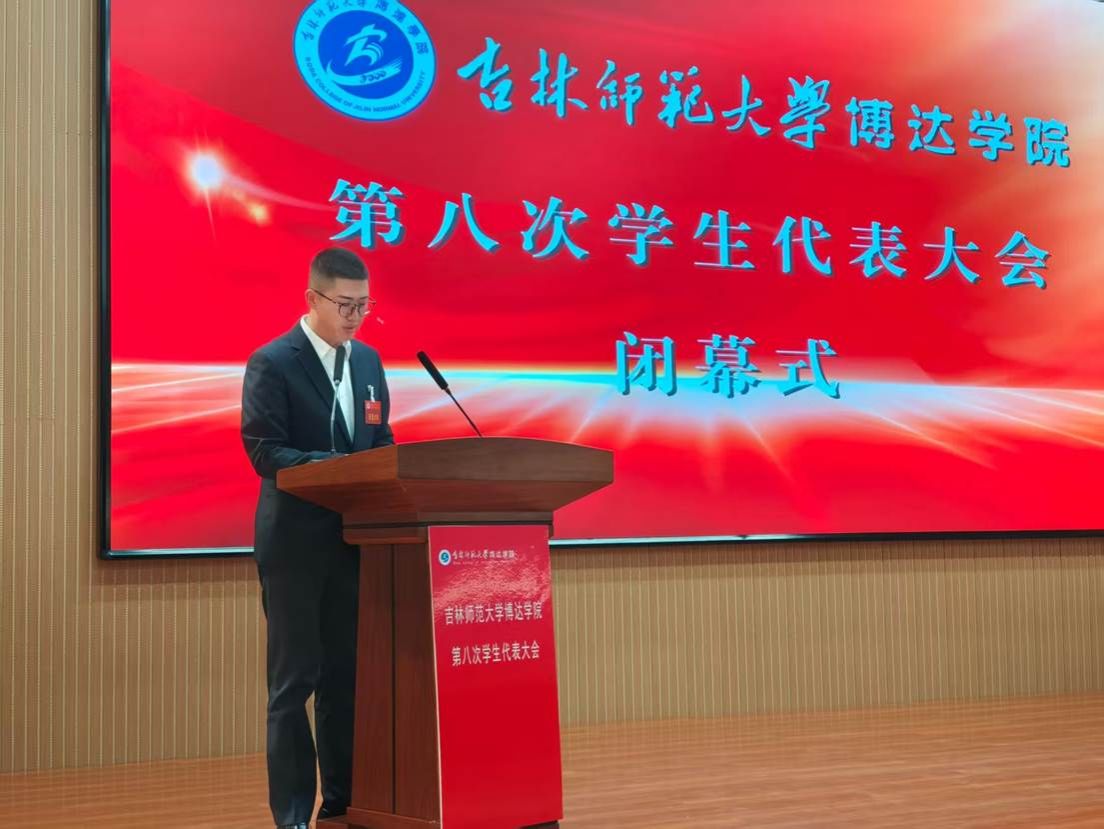 为全面贯彻党的二十大和二十届历次全会精神,深入贯彻习近平总书记关于青年工作的重要思想,按照《中华全国学生联合会章程》的规定,经吉林省学生联合会和学校党委批准。我校于2025年11月5日在体育馆学术报告厅隆重召开吉林师范大学博达学院第八次学生代表大会。会议认真总结了过去一年我校学生会的工作,选举产生吉林师范大学博达学院第二十二届学代会委员会和新一届校学生会主席团。