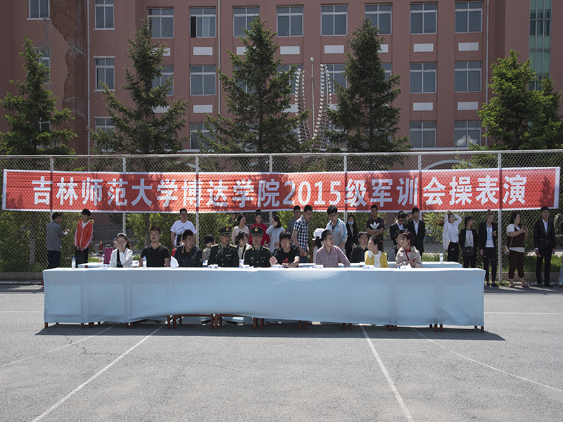 清晨的微风刚刚拂过,嘹亮的军歌已经响起。随着2015级的军训进入尾声,军训歌咏比赛也在5月18号上午9点于二教篮球场隆重举行。军体部的老师们以及各系导员莅临现场观看了比赛,并担任了此次评委。