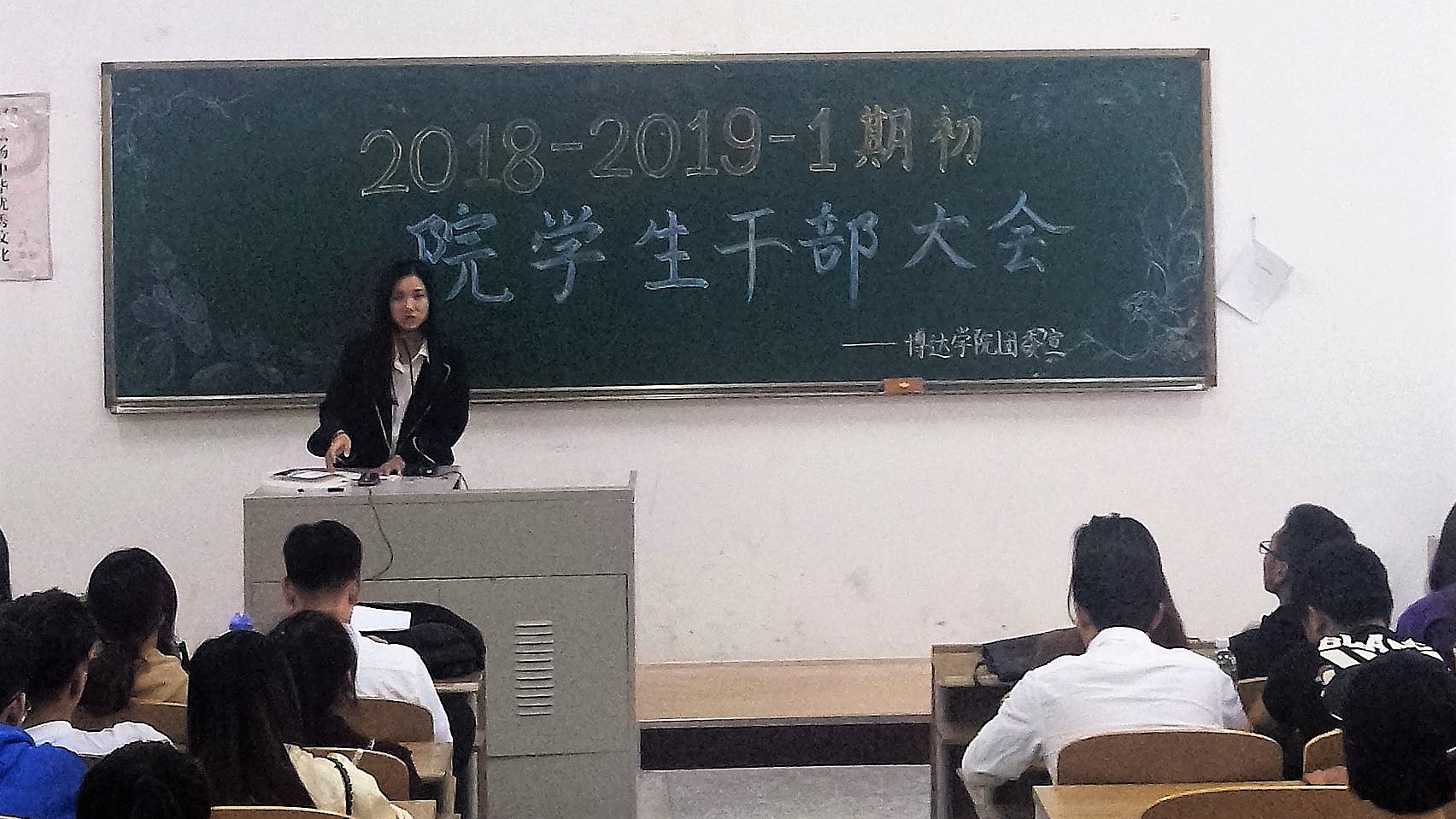 吉林师范大学博达学院团学联学生干部大会于9月7日中午在第三教学楼3321教室隆重召开。团学联主席团和各部部长以及各协会会长出席了本次大会。