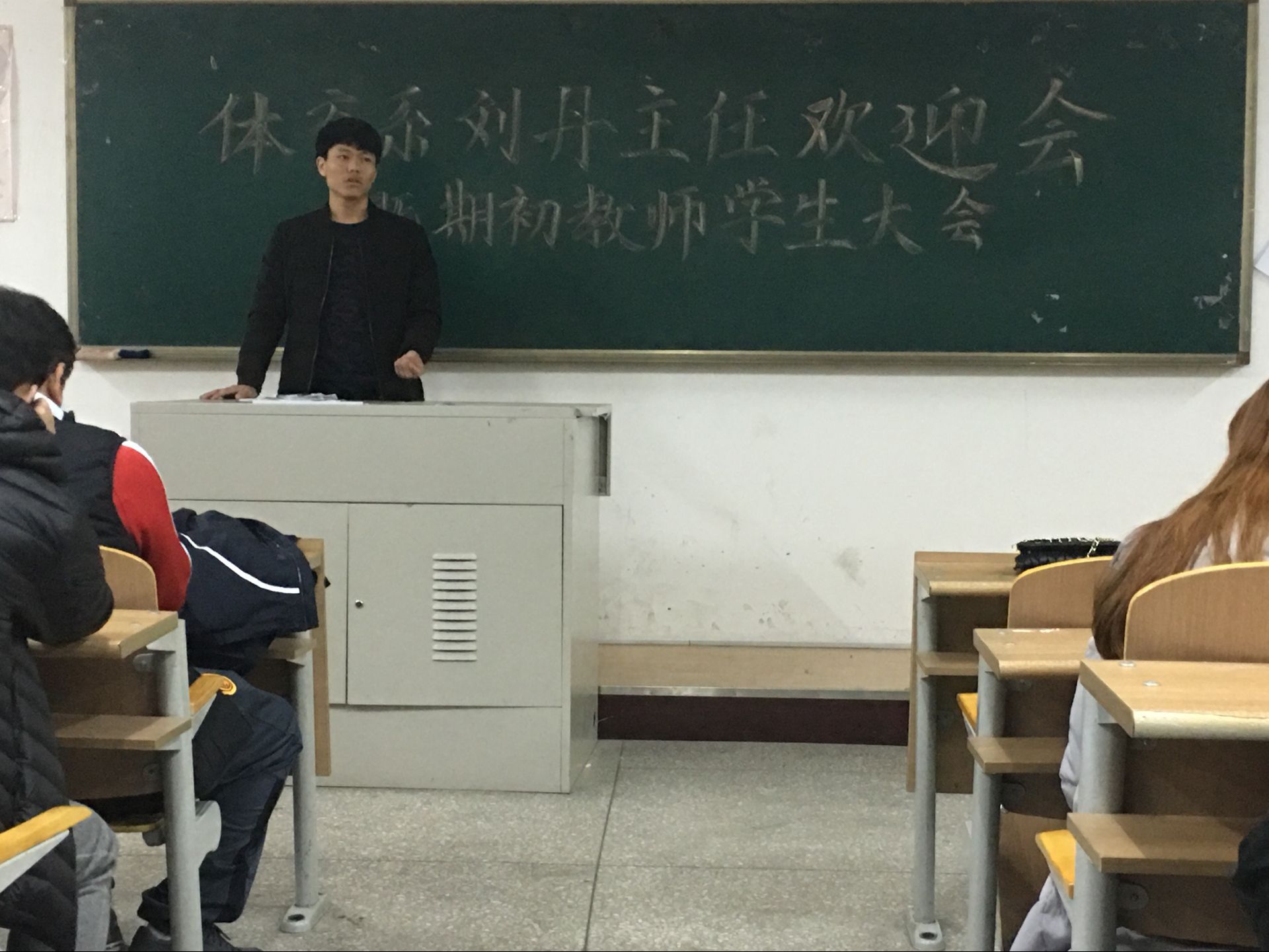 2017年2月26日,体育系召开了迎接系主任刘丹教授暨新学期期初教师学生大会。体育系刘丹主任,邵主任,卢主任,学工办辅导员,系内教师以及全体同学参加了会议。