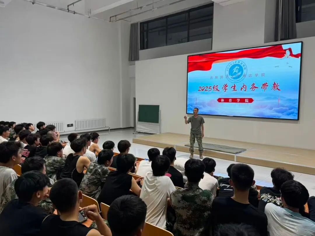 军训中,“出门看队伍,进门看内务”是铁律,内务整理更是大学生不可或缺的一课。体育学院于9月4日在阶梯教室2,给2025级新生军训团聚焦提升新生执行力、培养秩序感与良好生活习惯,组织了全宿舍内务卫生整治行动。