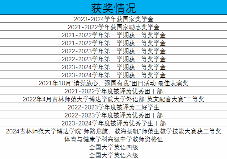 在学习上,我勤奋刻苦,保持积极的学习态度,并且会不断地总结与反思,合理安排时间,努力提高专业技能,积极考取了教师资格证,英语四级,英语六级。