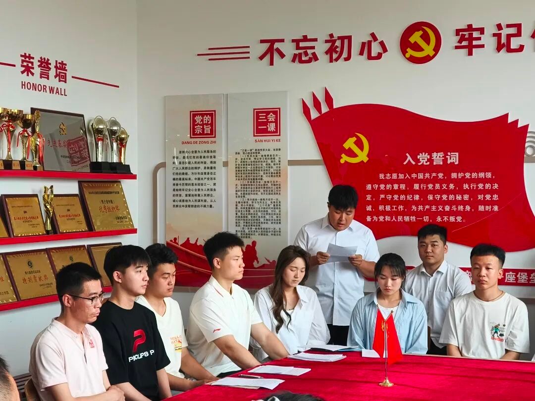 首先,请钟德宇、韩跃众、杨鸿瑞、廉响、杨雅棋依次宣读入党志愿书,汇报对党的认识、入党动机、本人履历、家庭和主要社会关系情况等。