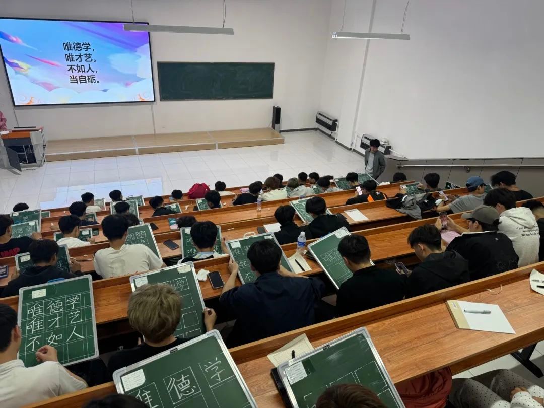 在各班的钢笔字和黑板字比赛上,同学们认真书写,字里行间充斥着争夺第一名的热情。
