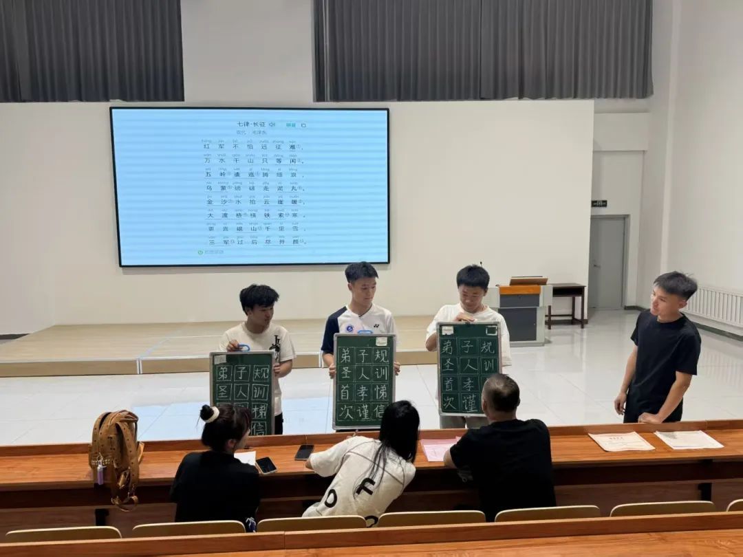 为提升体育学院学生的专业素养,强化教学基本功,推动师范生在职业技能上的不断进步,2025年5月28日体育学院在体育馆阶梯2教室举办了“写规范汉字,读标准字音,讲命题故事”师范生基本技能大赛。
